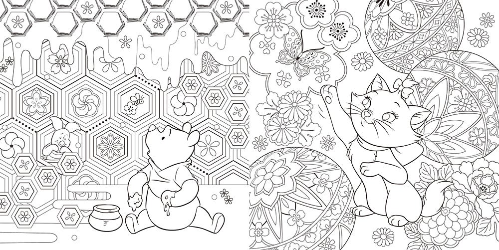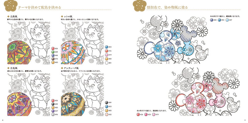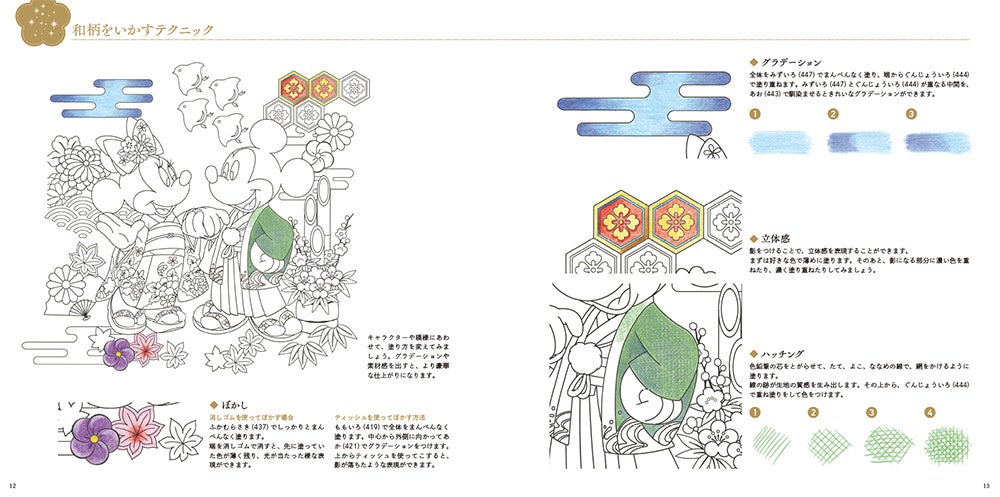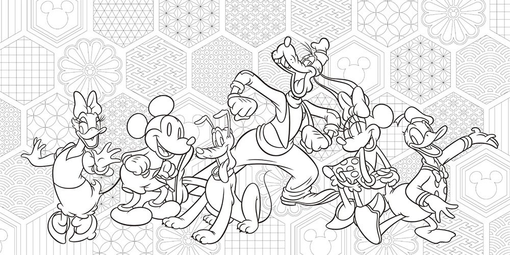 日本の伝統文様や四季の花が彩るディズニーキャラクターの塗り絵集『大人ディズニー 和モダン 塗り絵レッスンブック』発売