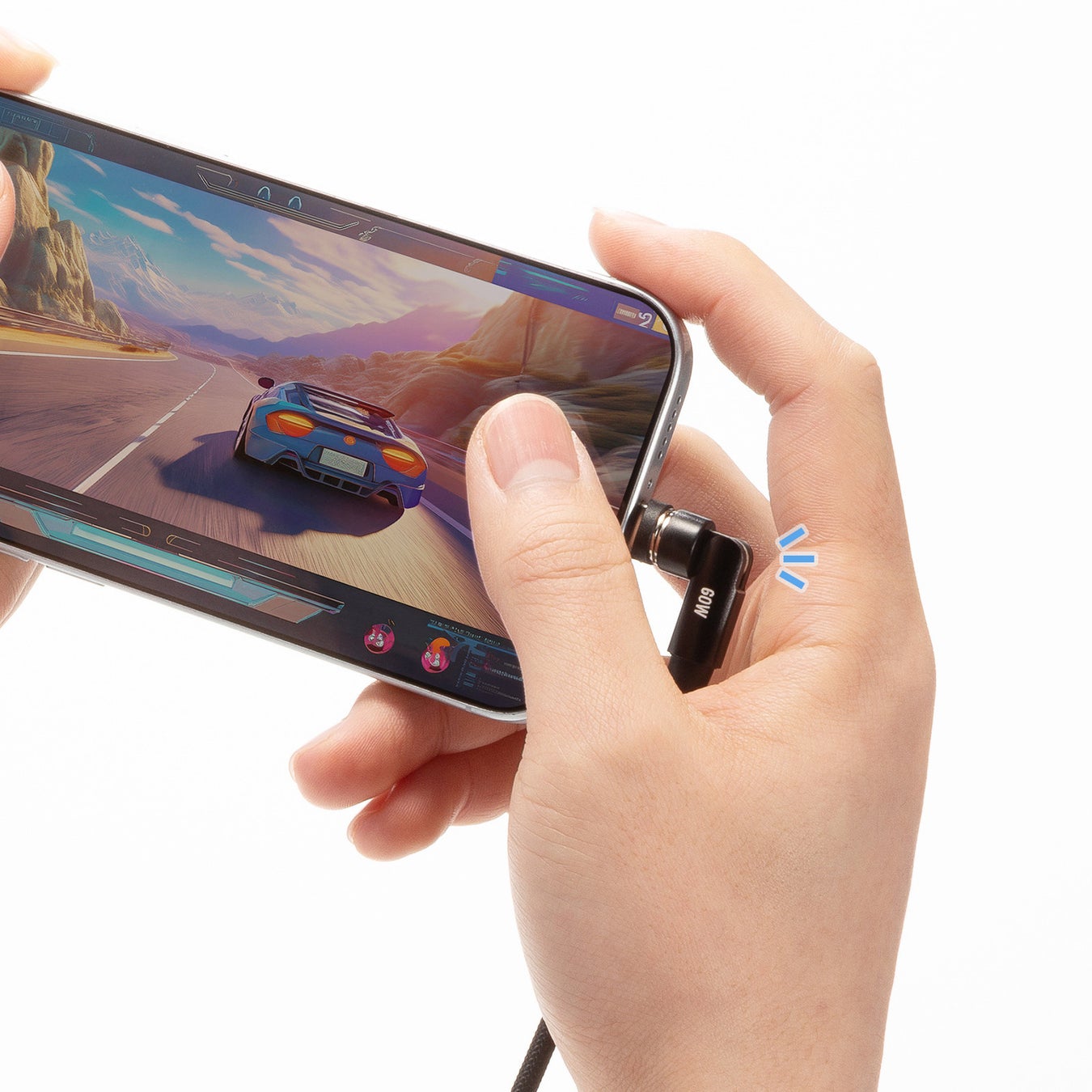 本製品は、片手で簡単にコネクタの接続・取り外しができるので、充電中の着信にも素早く対応できます。また、コネクタの抜き差しを繰り返す必要がないため、スマホ端子の劣化を防ぎます。