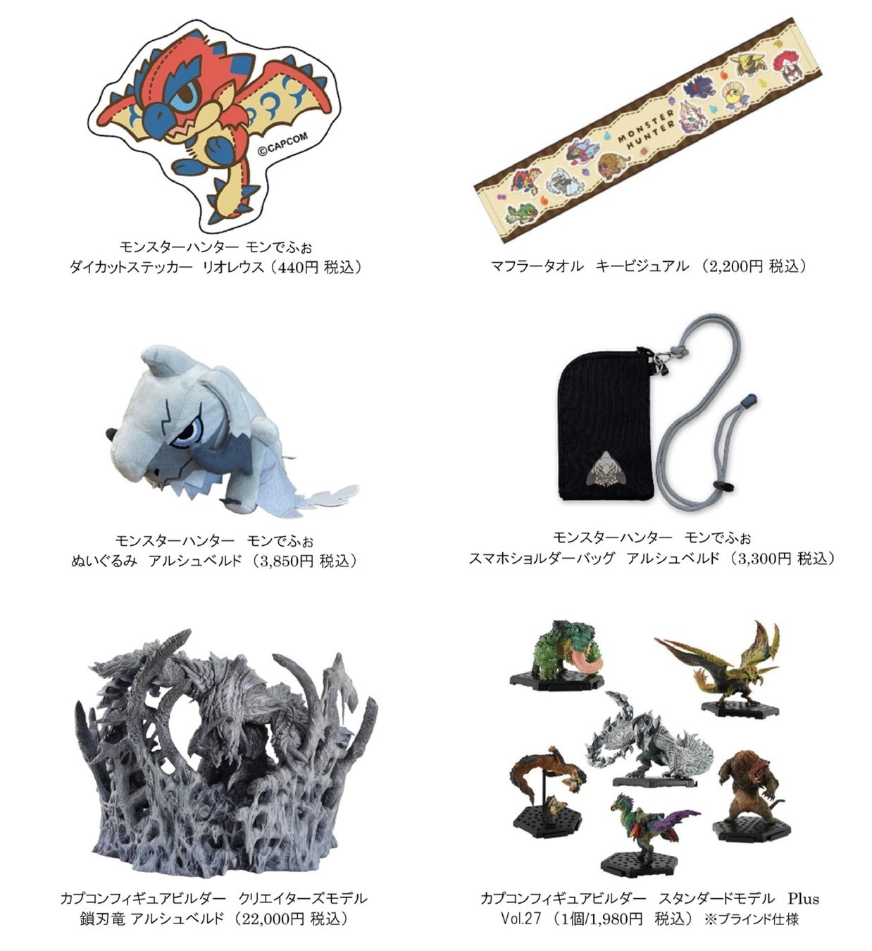 「モンスターハンター」に登場するモンスターを「ぬいぐるみ」タッチで描いた、10月16日(木曜)から発売予定の、かわいいデフォルメシリーズ「モンでふぉ」のグッズ約15アイテムや、キャラクターのデザインや設定のディティールだけではなく、世界観を含むそのキャラクターのすべてを凝縮したビックスケールのフィギュアシリーズ「カプコンフィギュアビルダー クリエイターズモデル」も販売いたします。