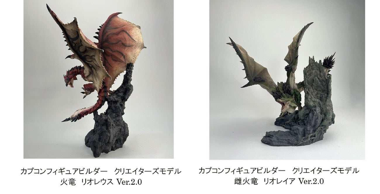 令和8年1月29日(木曜)販売予定の、新たな解釈を加え、新規造形としてリニューアルされたカプコンフィギュアビルダー クリエイターズモデル「火竜 リオレウス Ver.2.0」と「雌火竜 リオレイア Ver.2.0」