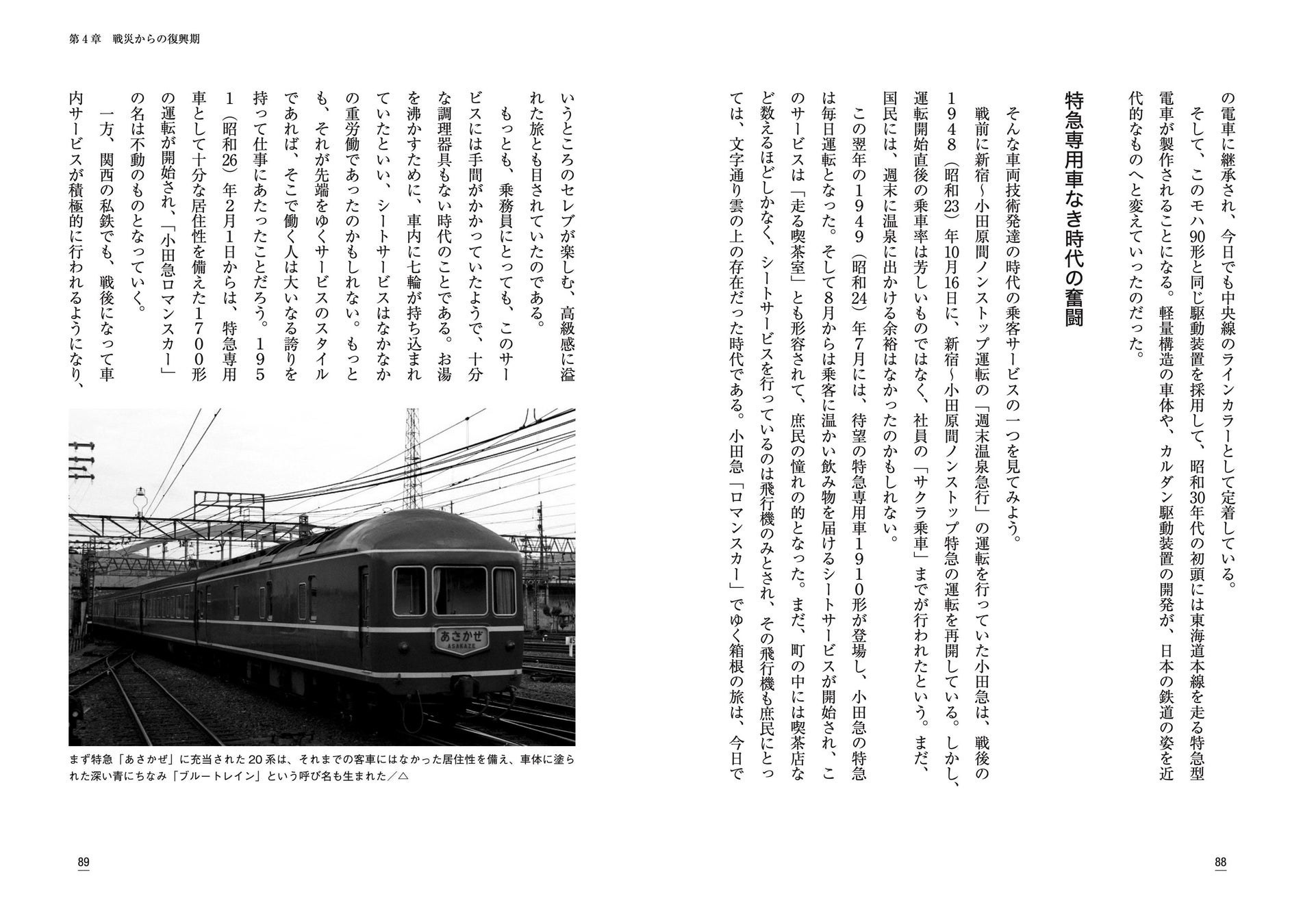 東海道本線全線電化と特急「あさかぜ」/「あさかぜ」よりも注目されていた昼行特急/「動くホテルと言われた20系客車/意外と狭かった憧れの「ルーメット」/東京~大阪を日帰りとした特急「こだま」/新時代の展望車となった「パーラーカー」/事故ばっかりだった特急「はつかり」/2両の食堂車を連結して走った特急「白鳥」/私鉄特急競演の時代1「小田急SE車」の登場/私鉄特急競演の時代2 2階建てとなった「近鉄ビスタカー」/私鉄特急競演の時代3 未来を見るための電車「名鉄パノラマカー」/私鉄特急競演の時代4 日光戦争を制した「東武デラックスロマンスカー」/地方私鉄のピカイチ車両たち/ビジネスライクだった0系新幹線