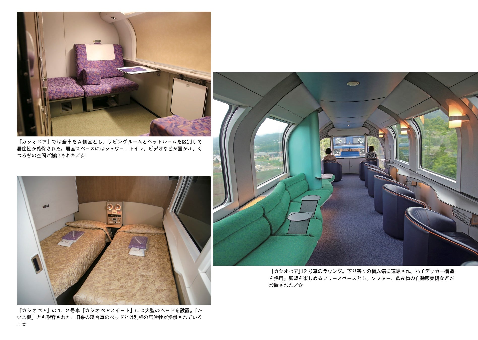 「ブルートレイン」を凌駕した寝台列車/「ヨン・サン・トオ」ダイヤ改正と485系/私鉄にも「グリーン車」と「食堂車」が登場/「DISCOVER JAPAN」と「SLブーム」の時代/大井川鉄道で復活した蒸気機関車/国鉄が「SLやまぐち号」の運転を開始/お座敷列車から「ジョイフルトレイン」へ/短命に終わった「ジョイフルトレイン」/左右非対称デザインで利用者を驚かせた「リゾート21」/2階建て新幹線100系の誕生/「グランドひかり」の登場と2階建て車両のその後/飛行機と競争する新幹線の工夫/寝台車の改良。事故を契機に見直された客車の構造/人気の凋落を救うべく行われた客車の改造/寝台特急「北斗星」の登場/「北斗星」を凌駕した「トワイライトエクスプレス」/オール個室&オール2階建ての「カシオペア」/寝台列車の最終形? 3両だけ作られた「夢空間」/四国の鉄道 海洋堂・トロッコ列車