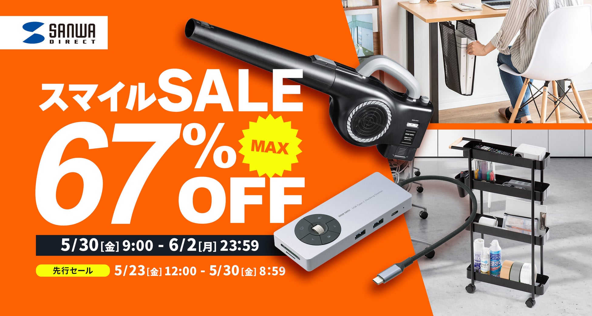 サンワサプライ株式会社(本社:岡山市北区田町1-10-1、 代表取締役社長 山田 和範)が運営するサンワダイレクト Amazon店は、Amazon.co.jpにて1807製品が最大67%OFFになるタイムセールを5月23日(金)から6月2日(月)までの11日間開催いたします。