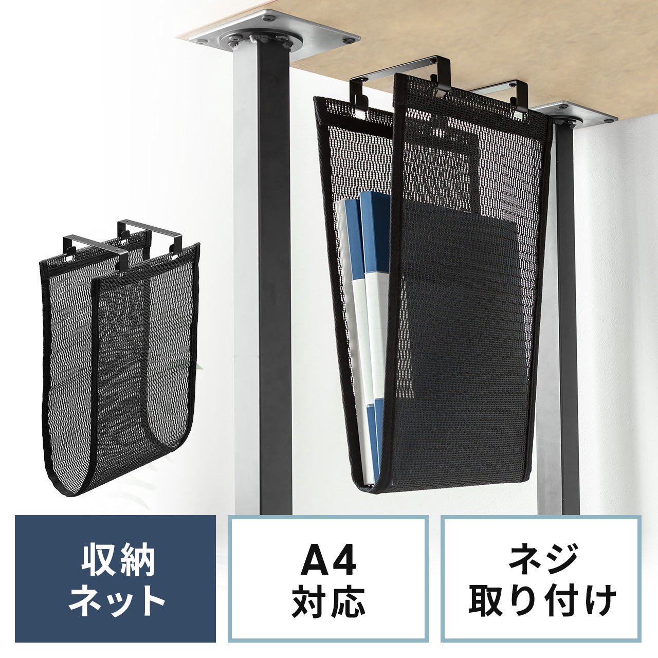 ■デスク下収納ネット(A4対応・ネジ取り付け)100-UDS010
