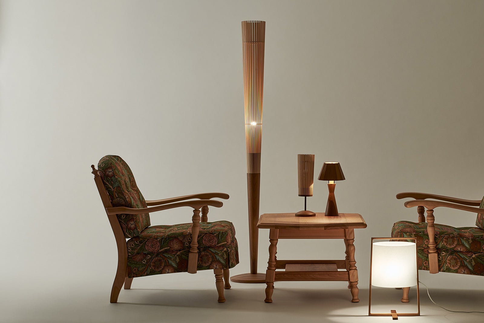 木工家具の産地である飛騨高山において半世紀のあいだ木製照明作りに従事。2007年には木製照明のオリジナルブランド【モアレ】を立上げ。飛騨の匠の伝統の心と技を受け継ぎ、天然木の暖かさと明かりの美しさを融合させた心地よさを大切にした照明器具を提供しています。