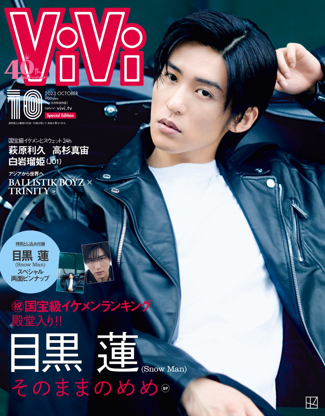 国宝級イケメンランキング殿堂入り記念、ViVi10月号特別版表紙は目黒蓮(Snow Man)、豪華両面ピンナップ付き。特集「そのままのめめ」では、貴重なバイクにまたがる姿も収録。8月23日(水)発売