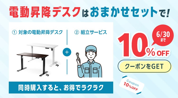 対象商品をセット購入で、電動昇降デスクが10%OFF
