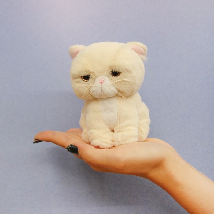 猫種エキゾチックショートヘアをモデルにした、むっちりふわふわな「もちゃぼんぼん」ぬいぐるみです。