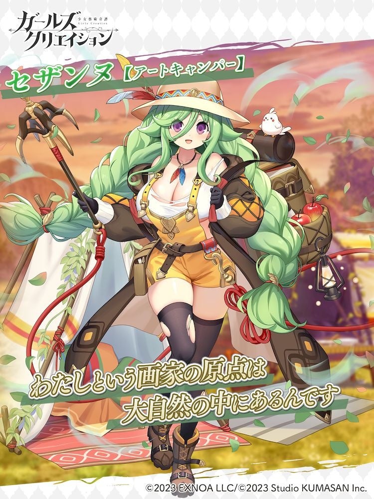 合同会社EXNOA(本社:東京都港区、CEO:村中 悠介、URL:https://games.dmm.com/)が運営するDMM GAMESにおいて、「クリエイティブチーム くまさん」第4弾作品となる『ガールズクリエイション -少女藝術綺譚-』(以下、『ガールズクリエイション』)にて、イベント「山麓のアートキャンプ」を開催いたしました。また、マネ★5スタイル【スイートキャンプ】とセザンヌ★5スタイル【アートキャンパー】が新登場のピックアップガチャの開催もお知らせいたします。