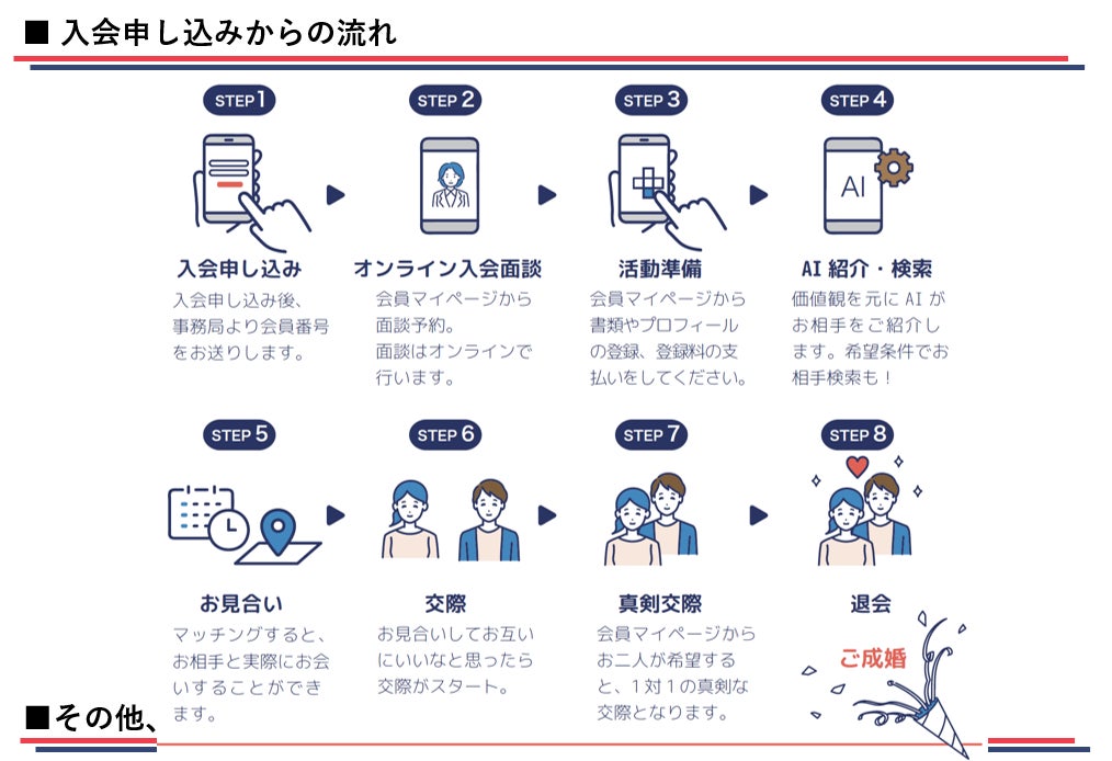 独身証明書などの提出、入会面談で、安心して利用できるアプリを提供