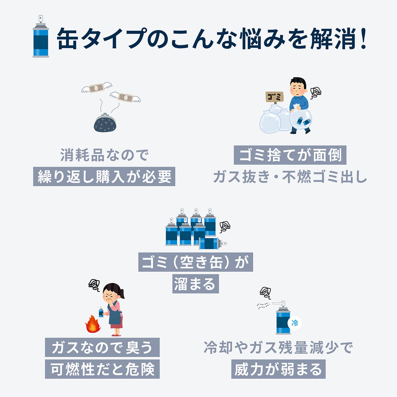 本体は充電式で繰り返し使用することが出来ます。缶タイプのエアダスターに比べ繰り返しの購入やゴミ捨てや火気による危険性などが無く、経済的で地球にやさしいです。