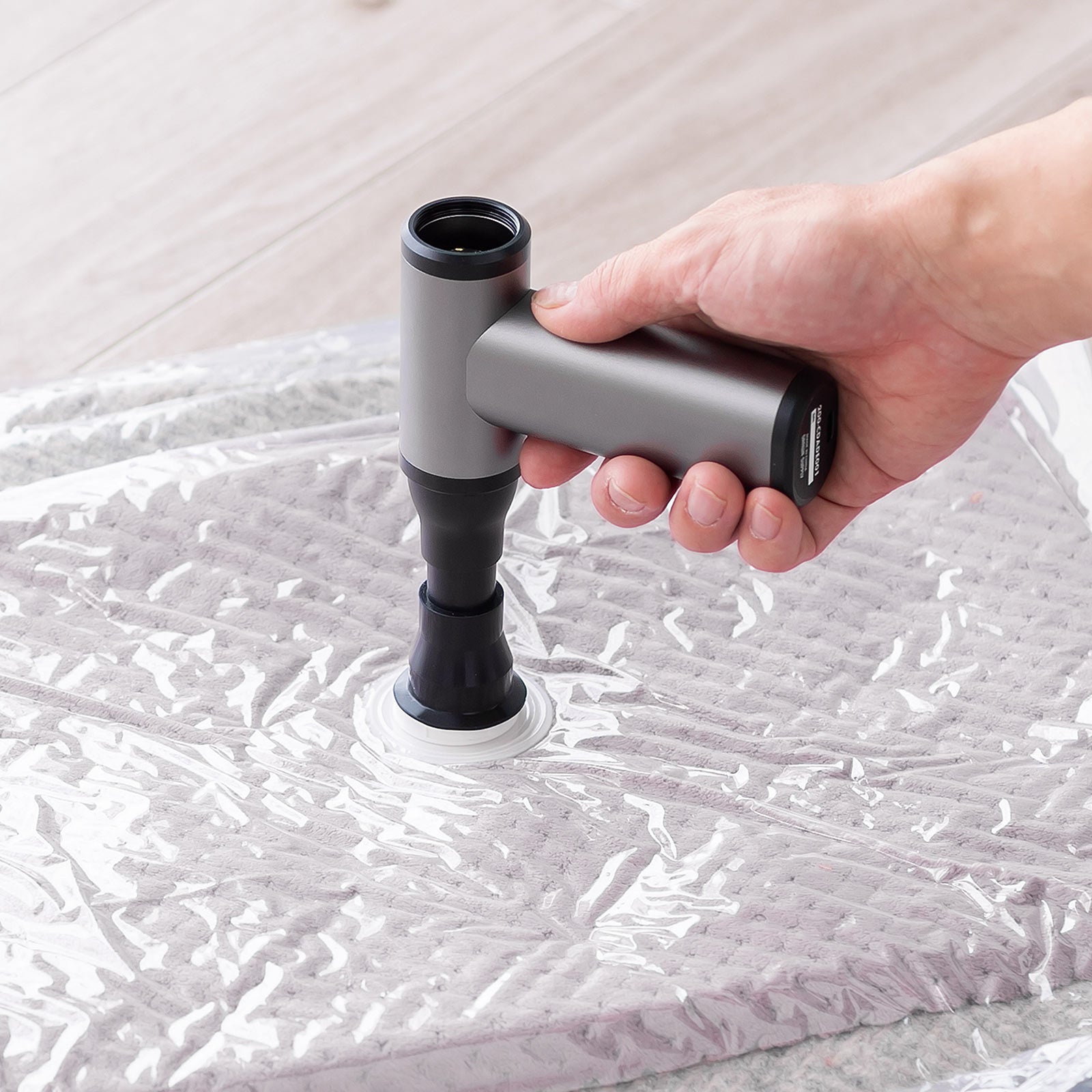 空気を噴射してホコリを飛ばすだけではなく、空気を吸引して圧縮袋やエアーベットの空気抜きにも使えます。吸引で使用する際には、噴射口の逆側にアタッチメントを接続するため、注意が必要です。