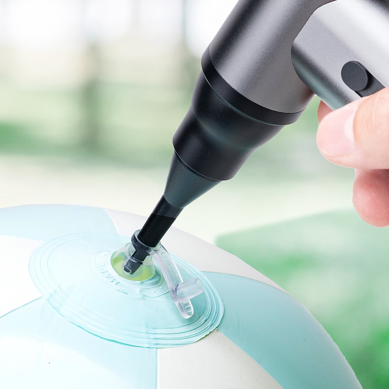 4種類のアタッチメントが付属しています。通常ノズルからブラシノズルに、吸引用アタッチメントまで付属しています。アタッチメントを使用することで掃除だけでなく、浮き輪などの空気入れなど多用途に使用することが出来ます。