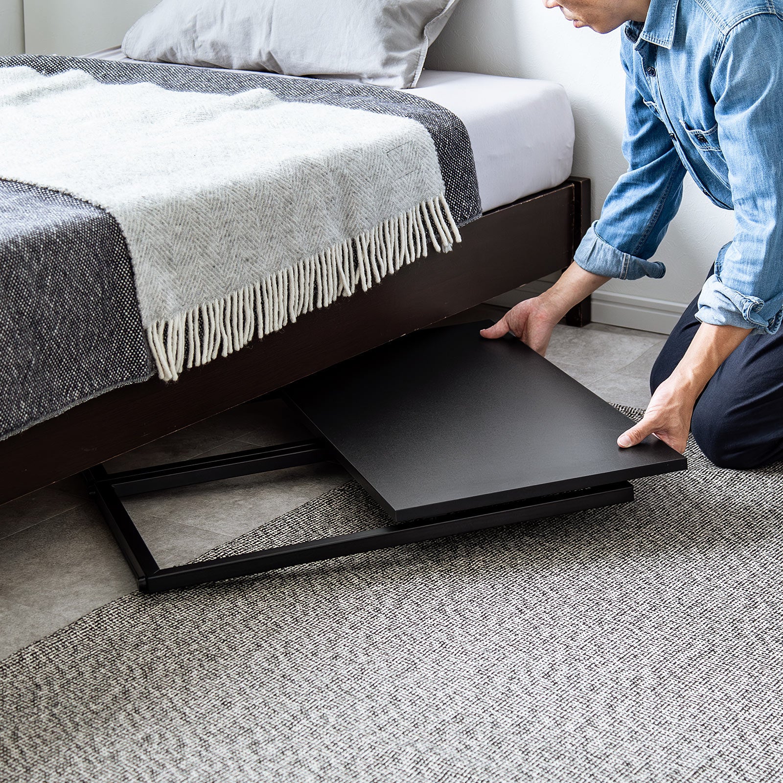 使わない時はわずか6cmの薄さに折りたたむことができます。驚くほどスリムなため、壁と家具との隙間やベッドの下にスッキリ収納することができます。