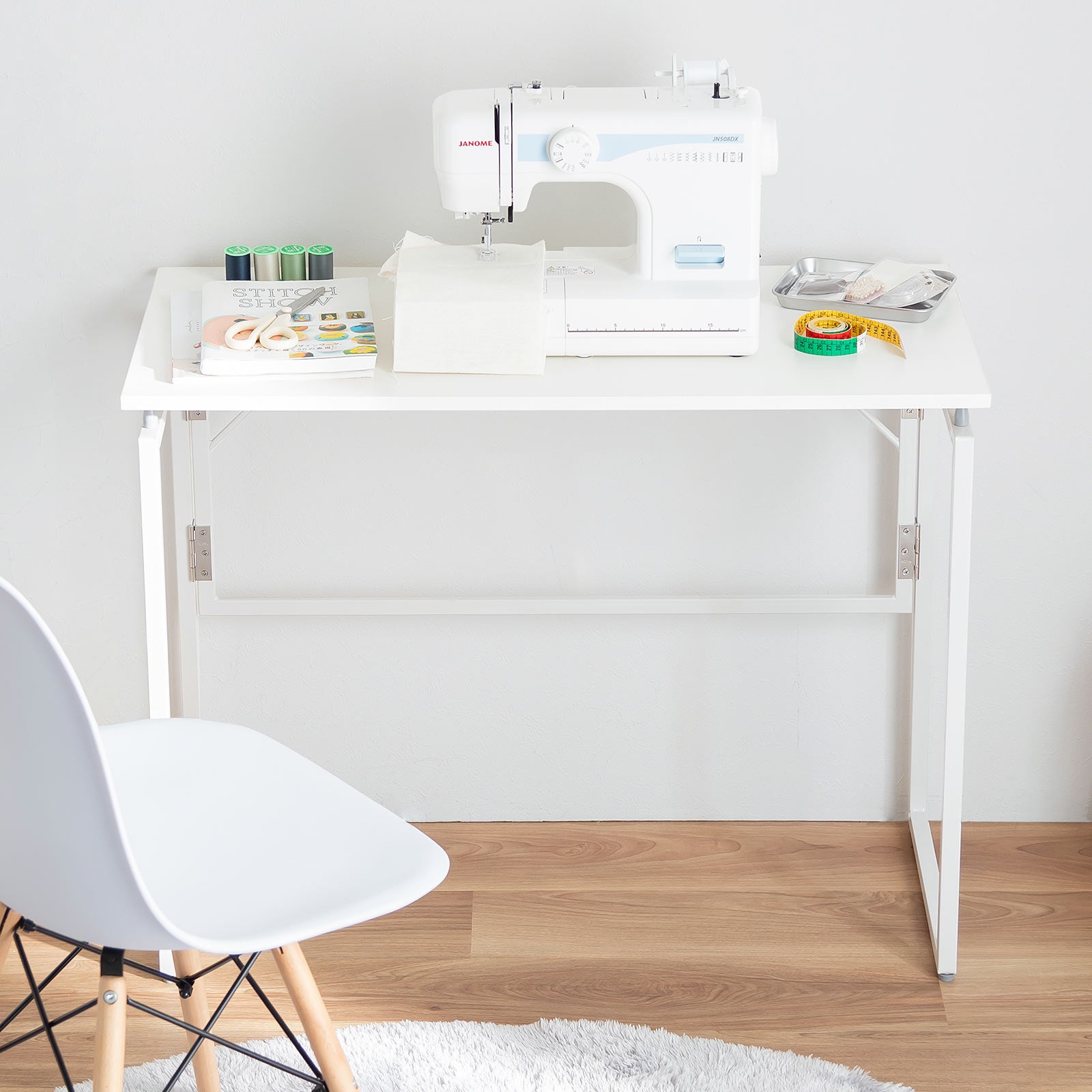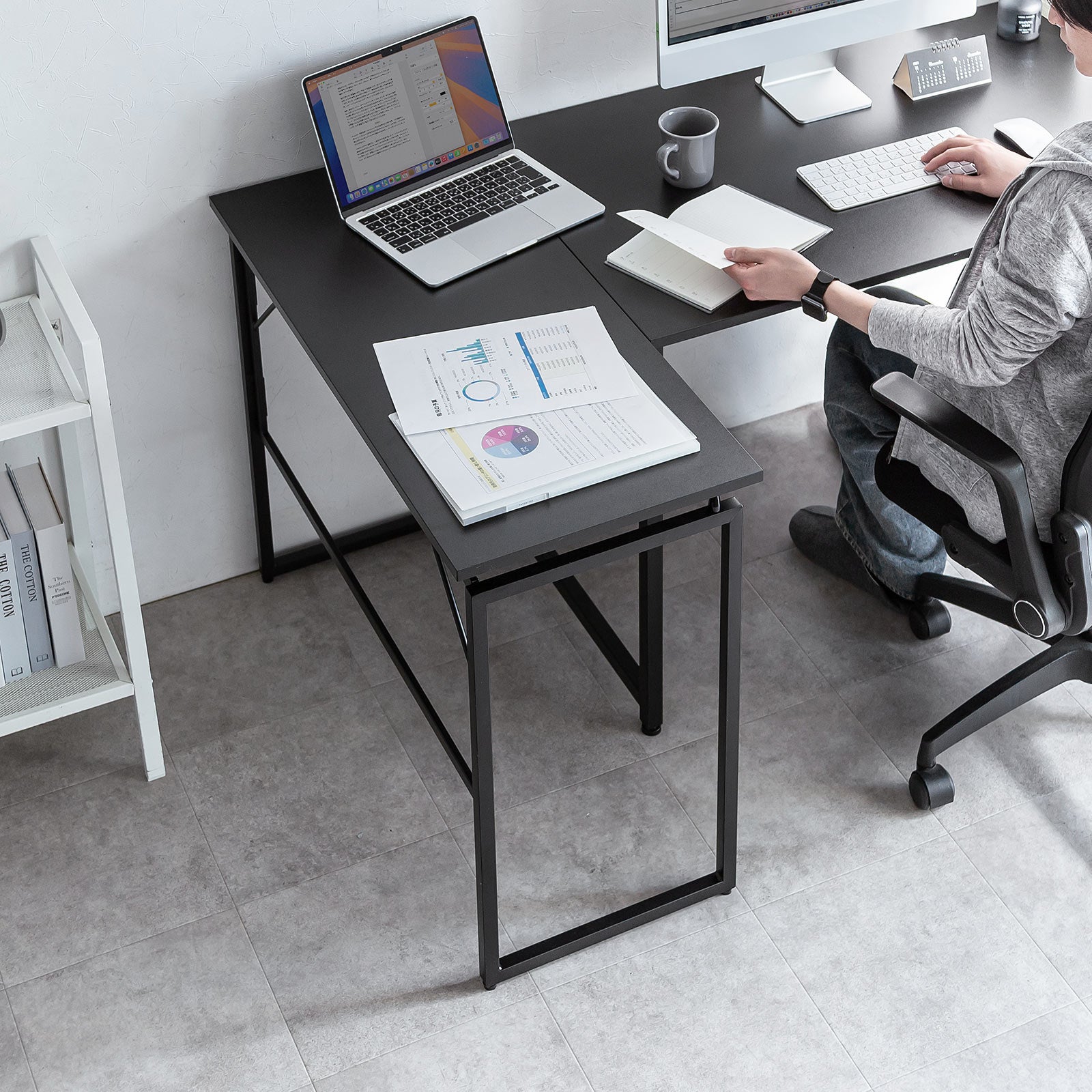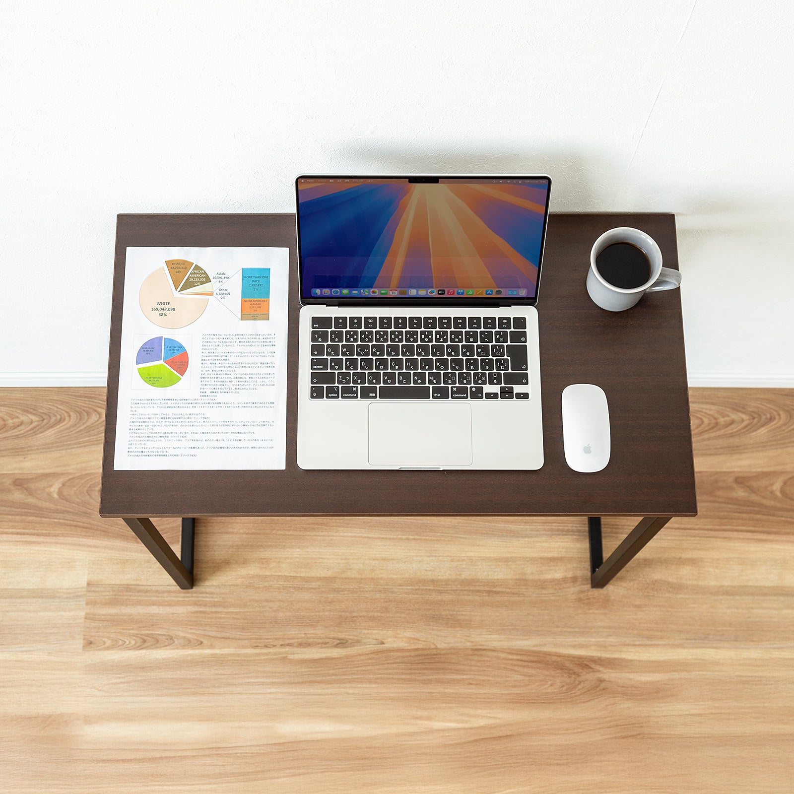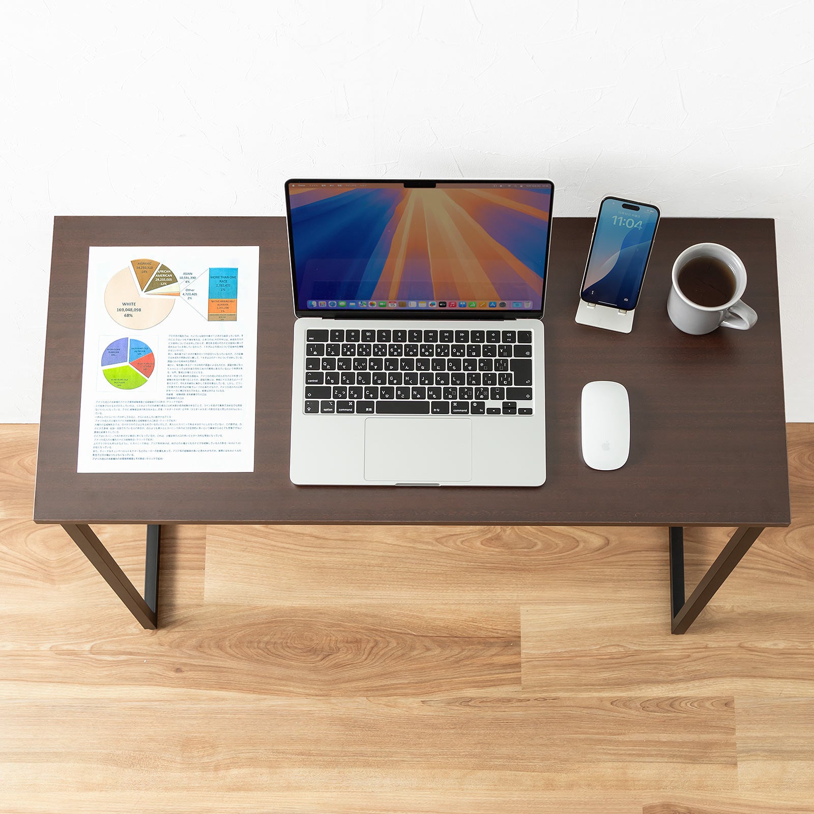 ノートパソコンと資料を同時に広げても余裕のあるサイズ感で、在宅ワークやDIYなど、多目的に活躍します。折りたたみ式ながら継ぎ目のないフラットな天板を採用しています。
