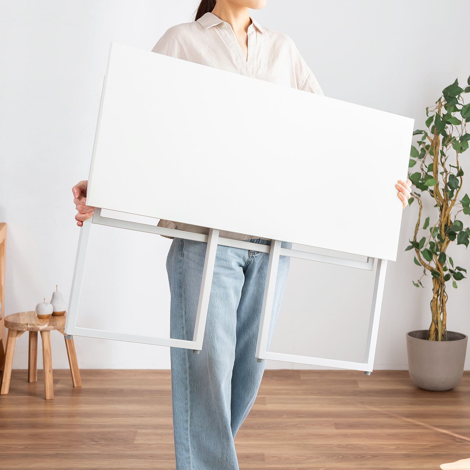 設置も収納もたったの3ステップ。折りたたみ式とは思えないほどスムーズな操作感で、ストレスフリーに使えます。急な作業スペースの確保や、毎日の勉強机としても大活躍します。