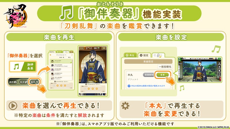 スマホアプリ版のみで使用できる新たな機能「御伴奏器(おともそうき)」を実装いたしました。