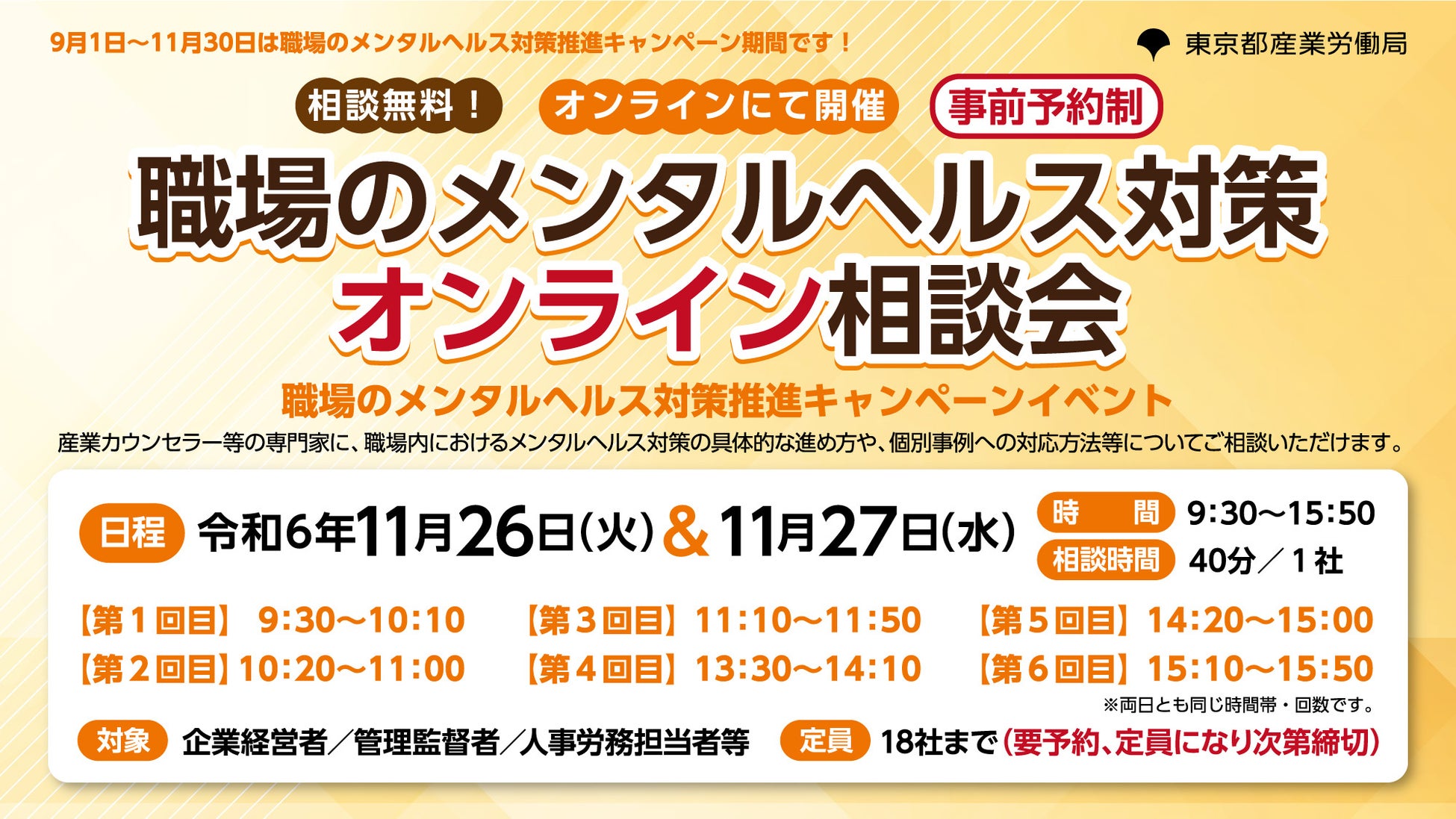 キャンペーン期間中には、都が職場のメンタルヘルス対策に関するシンポジウムと相談会をオンラインで実施します。