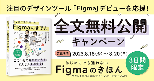 本書は発売以降、「初心者でもFigmaがすぐに使えるようになる」「効率的に学習できるため時間を無駄なく使える」とご好評をいただいています。Figmaを使い始めるきっかけとして、より多くの方々に本書をご覧いただけるよう、8月18日(金)から8月20日(日)の3日間限定で、全ページを試し読みできる「全文無料公開」を行います。