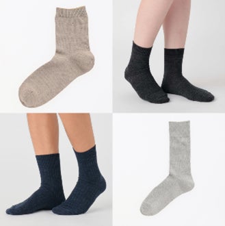 イオンの店頭で回収した衣料品をリサイクルし、その原料の一部をくつ下に使用しています。