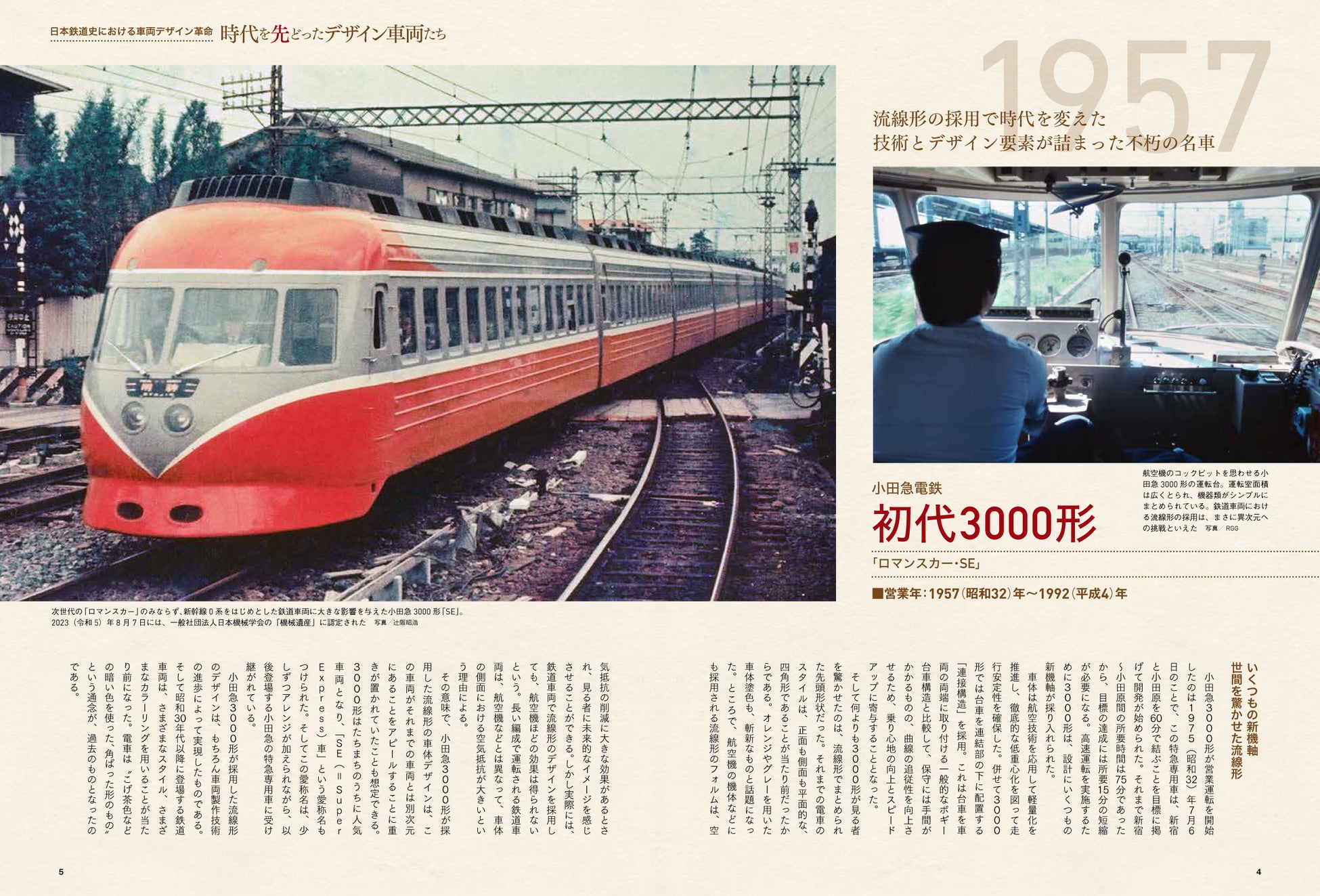 小田急3000形を筆頭に、国鉄151系や近鉄10100系、名鉄7000系などそれまでの鉄道の常識を覆すような革新的なデザインで話題となった車両を、昭和、平成、通勤・近郊電車に分けて紹介。時代背景や、その列車がその後の鉄道車両に与えた影響などを解説しています。