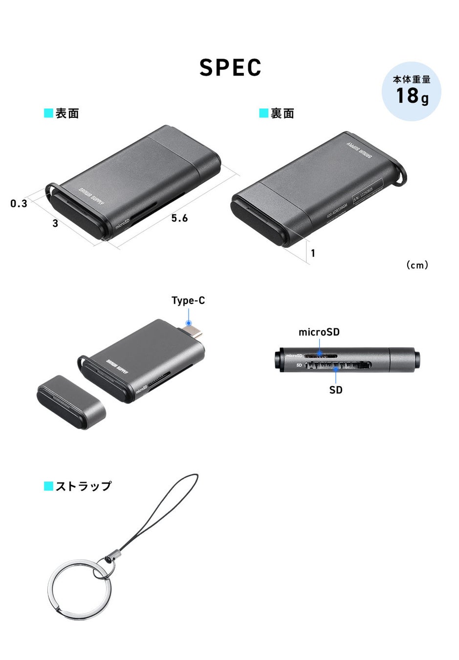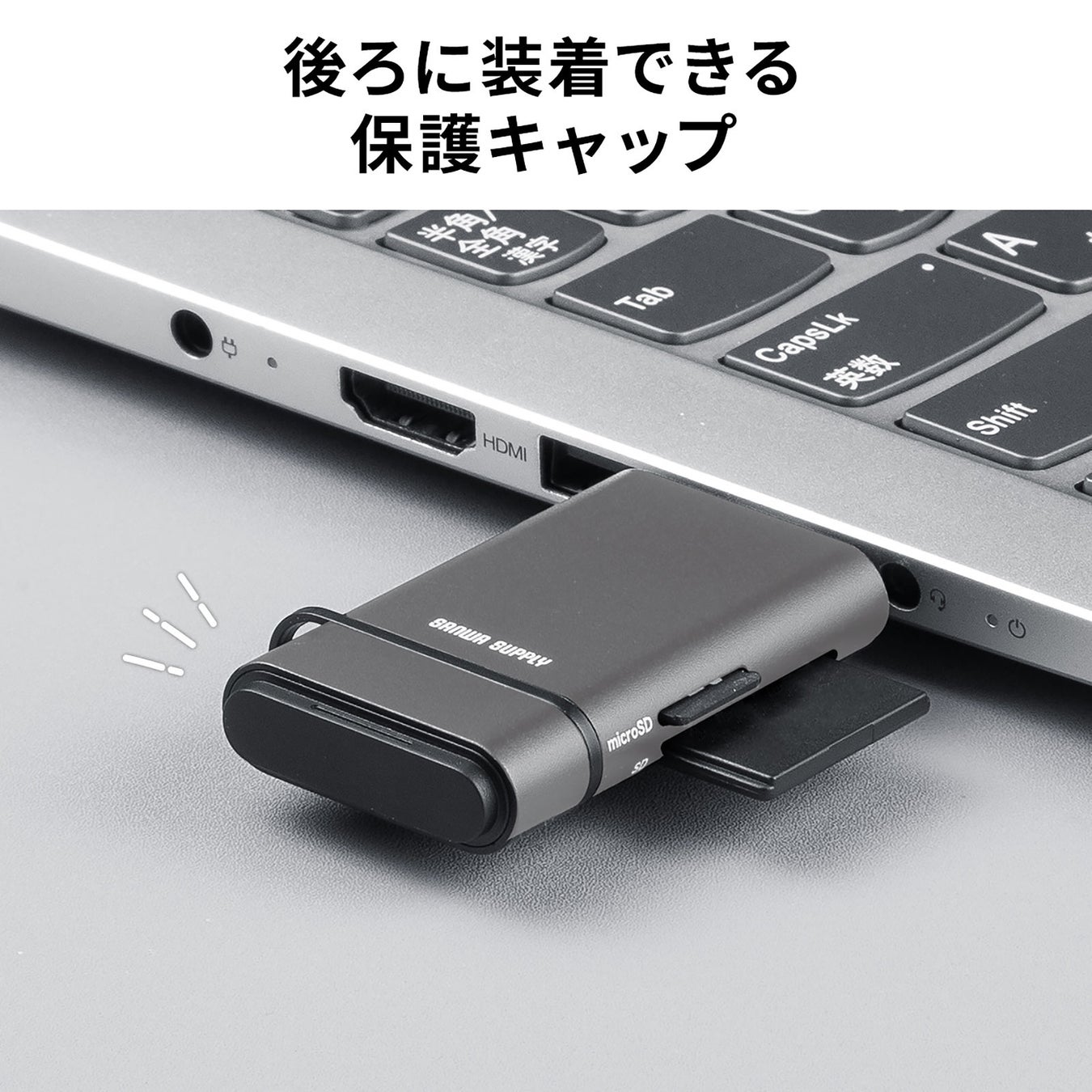 USB-C カードリーダー UHS-II 対応 SD microSDカード 同時認識 コンパクト USB3.0 USB 5Gbps Type-C 高速転送 SDXC/SDHC ガンメタリック