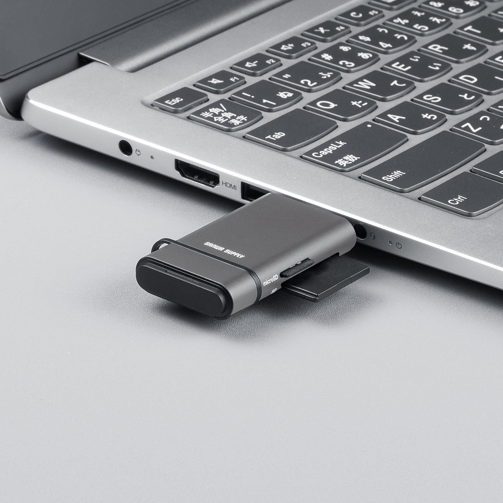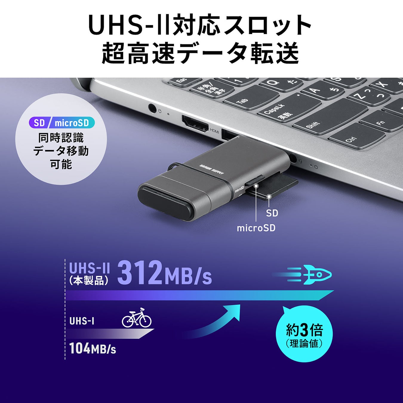 USB-A & USB-C カードリーダー UHS-II 対応 SD microSDカード 同時認識 コンパクト USB3.0 Type-C 高速転送 SDXC/SDHC ガンメタリック