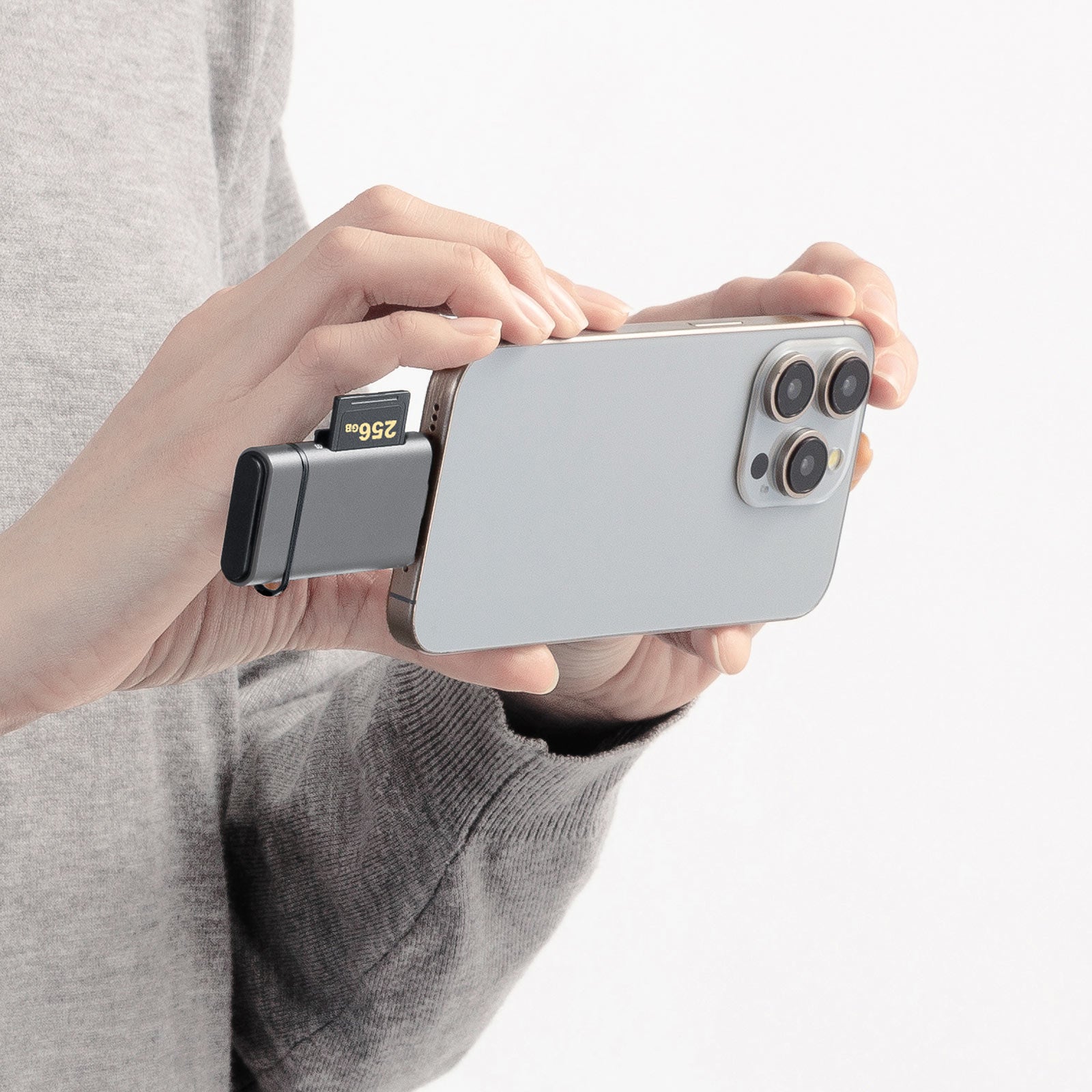 コンパクトな手のひらサイズながら、SDカードとmicroSDカードの同時認識、最大312MB/sの高速データ転送、4K/60HzのApple ProRes撮影にも対応した高性能なカードリーダー