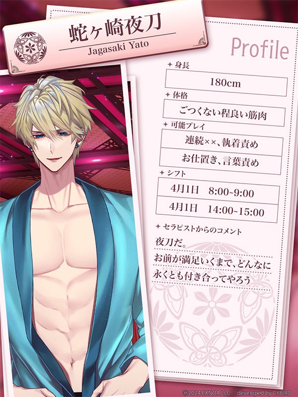 DMM GAMESを運営する合同会社EXNOA(本社:東京都港区、CEO:村中 悠介、URL:https://games.dmm.com/)は、オトナの女性向け恋愛ゲーム「夢幻楼と眠れぬ蝶」にて、現実世界に夢幻楼2号店が登場したことをお知らせいたします。また、ゲーム内にてエイプリルフール限定のミニボイスを販売中です。