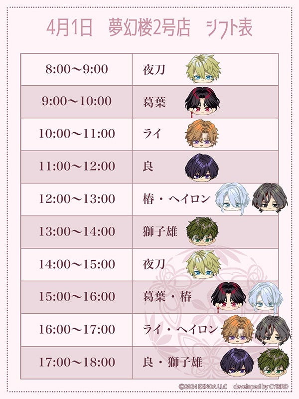 時間ごとに登場キャラクターが異なりますので、登場スケジュールをぜひチェックしてください!