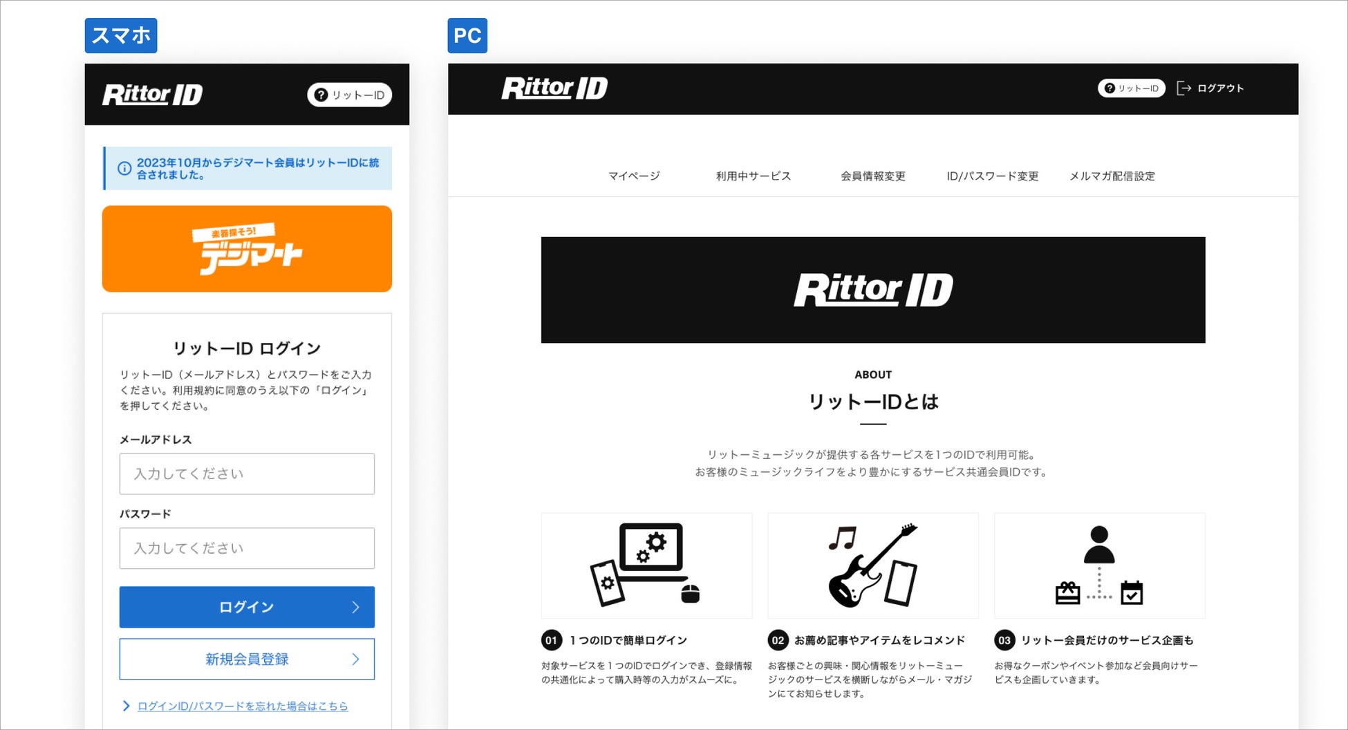 ※1 既にデジマート会員となっている方は、2023年10月上旬以降にデジマートにログインをする際に「リットーID」の利用規約および登録内容のご確認を行っていただく必要がございます。また、「リットーID」に登録後、会員情報については「リットーID」での管理となります。