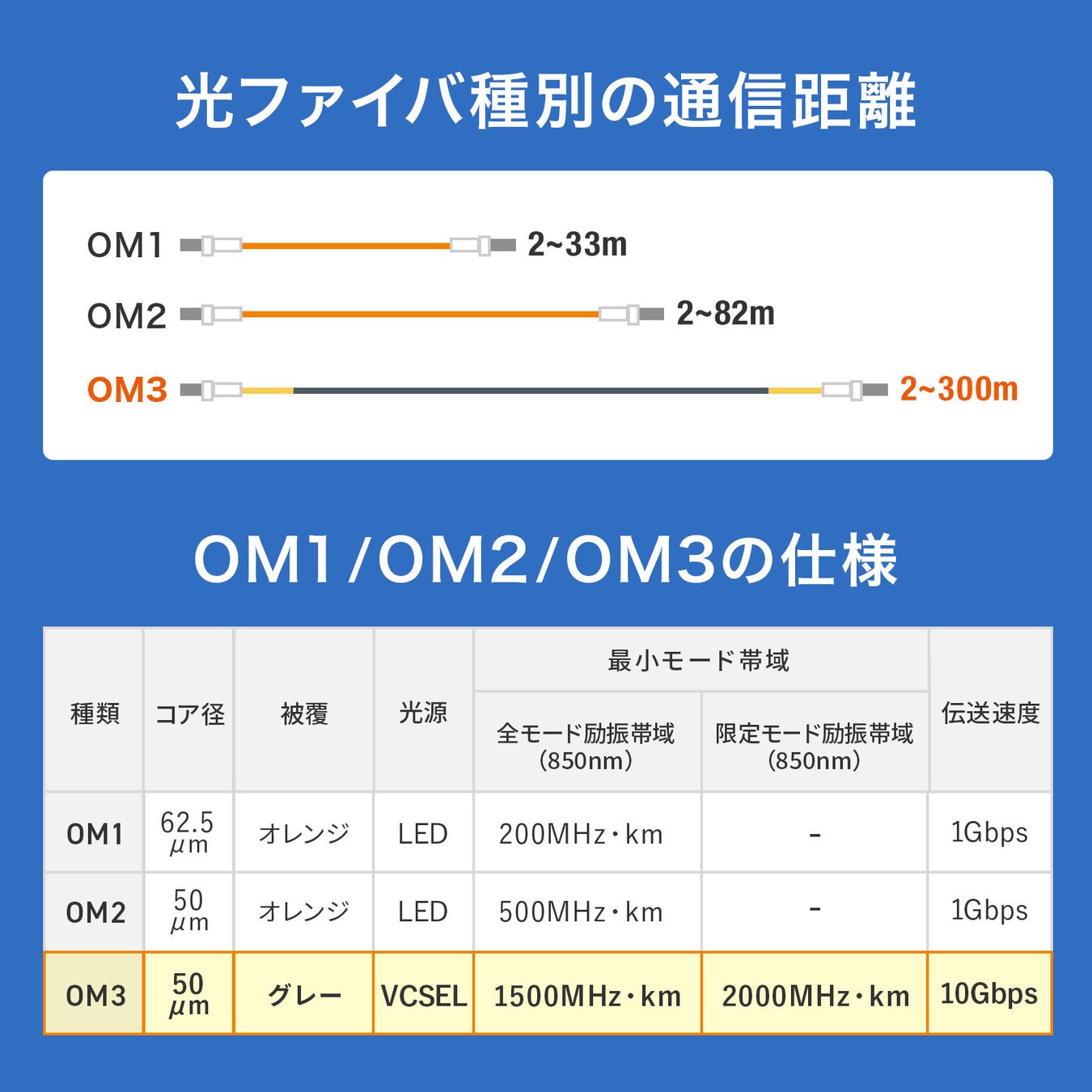 サンワサプライ株式会社(本社:岡山市北区田町1-10-1、代表取締役社長 山田和範)は、10GBASE-SR/SW規格に対応したOM3仕様準拠の光ファイバケーブル、LC-LCコネクタの「HKB-OM3LCLCWPRBシリーズ」とSC-SCコネクタの「HKB-OM3SCSCWPRBシリーズ」を発売しました。