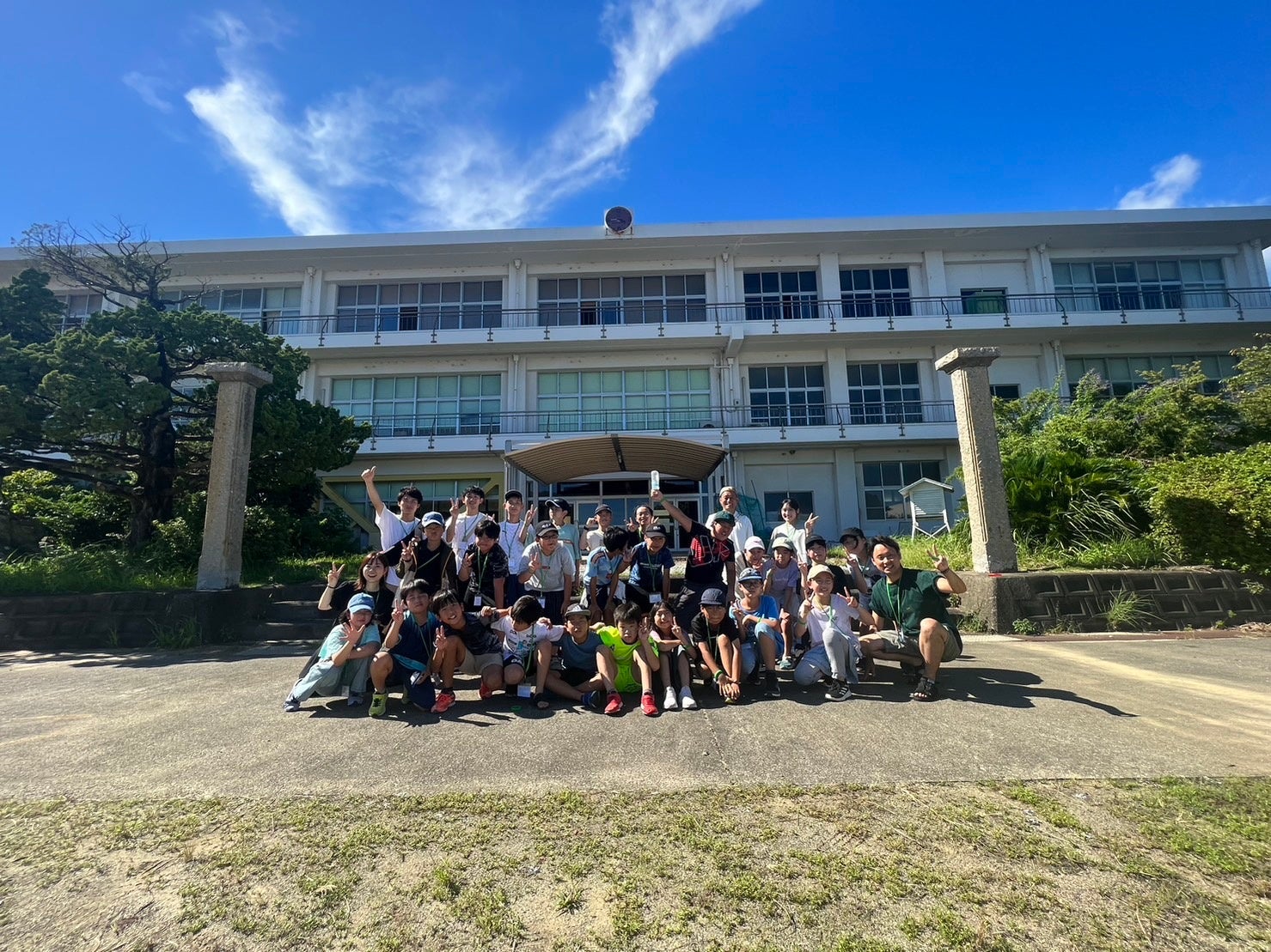 3日間を過ごしたのは今年3月に廃校になったばかりの、美しい海が見えるすさみ町江住小学校。校庭で焚火体験やバーベキューをしたり、校舎いっぱいを使って遊んだり、すさみ町にボランティアで来ている大学生が肝試しまで企画してくれました。
