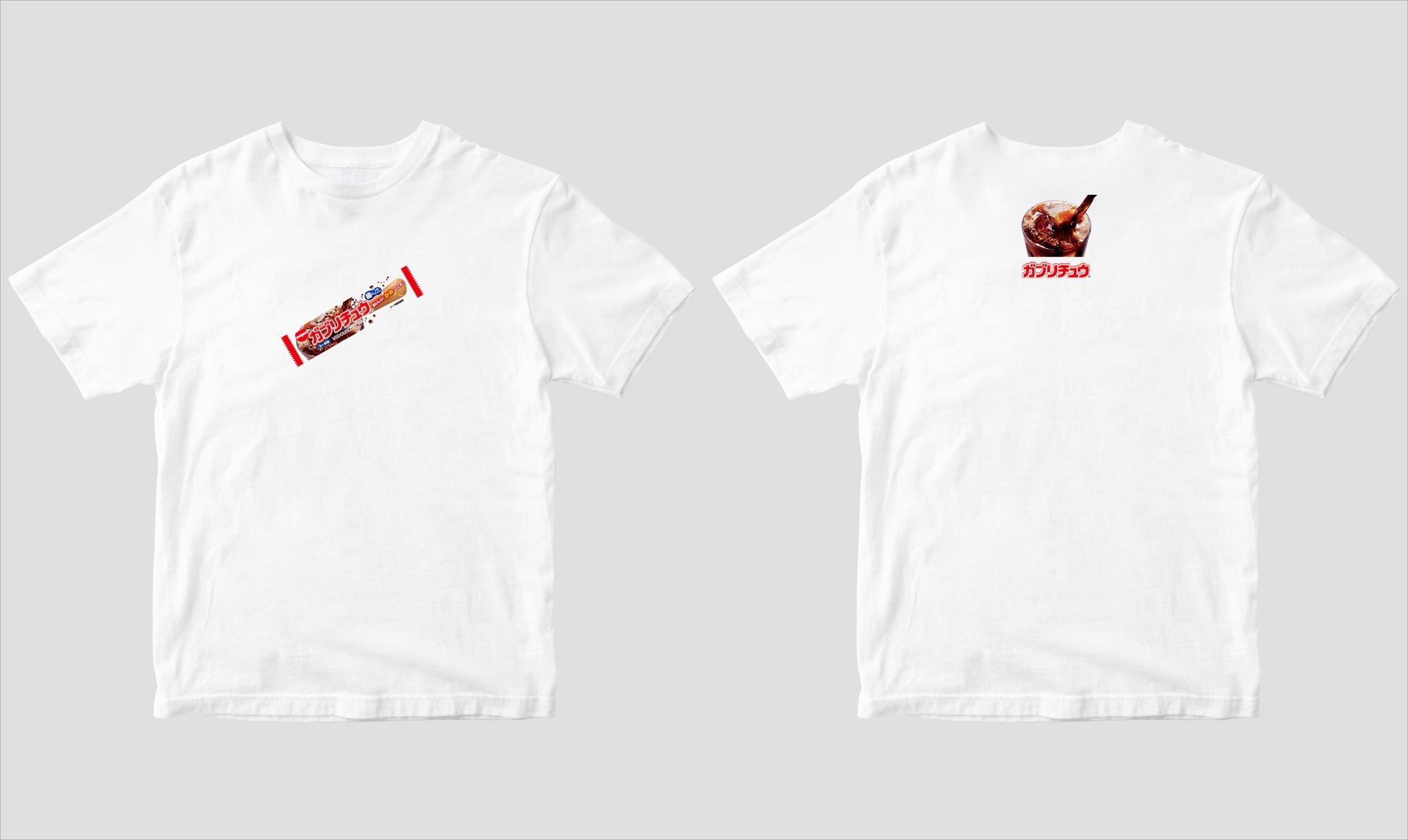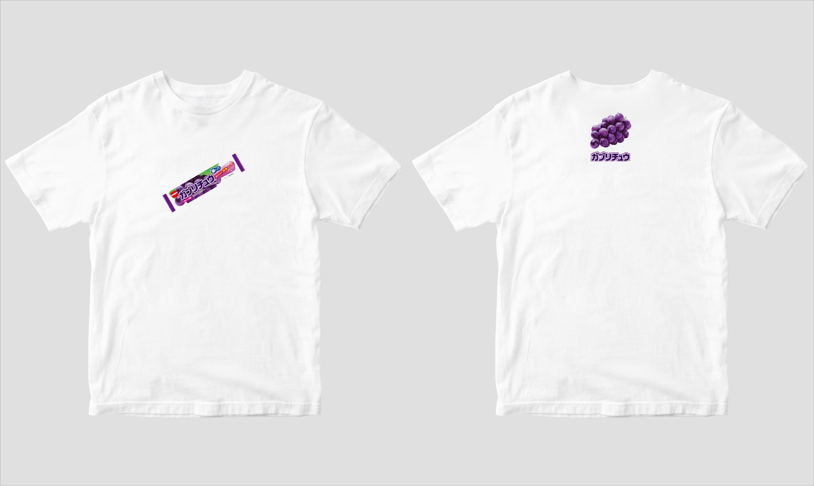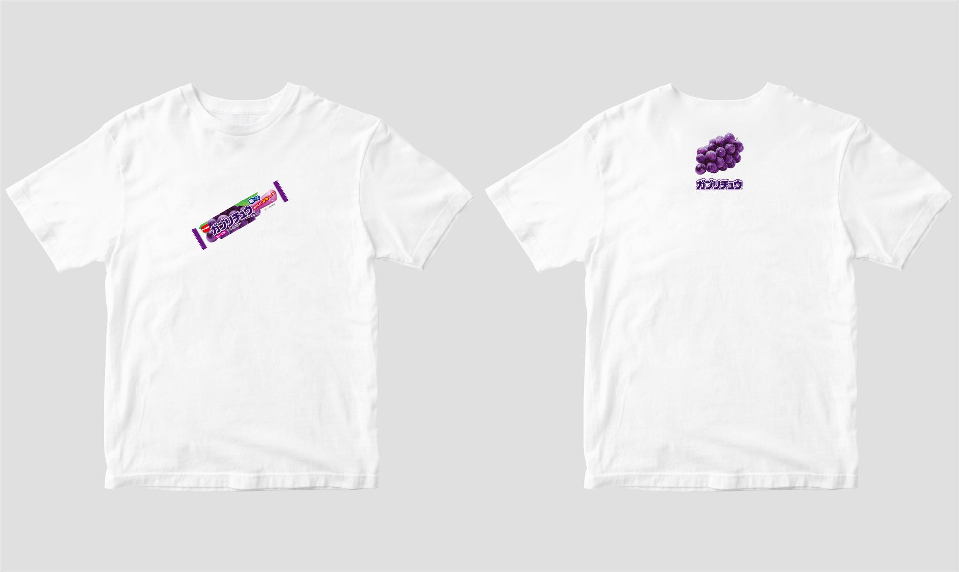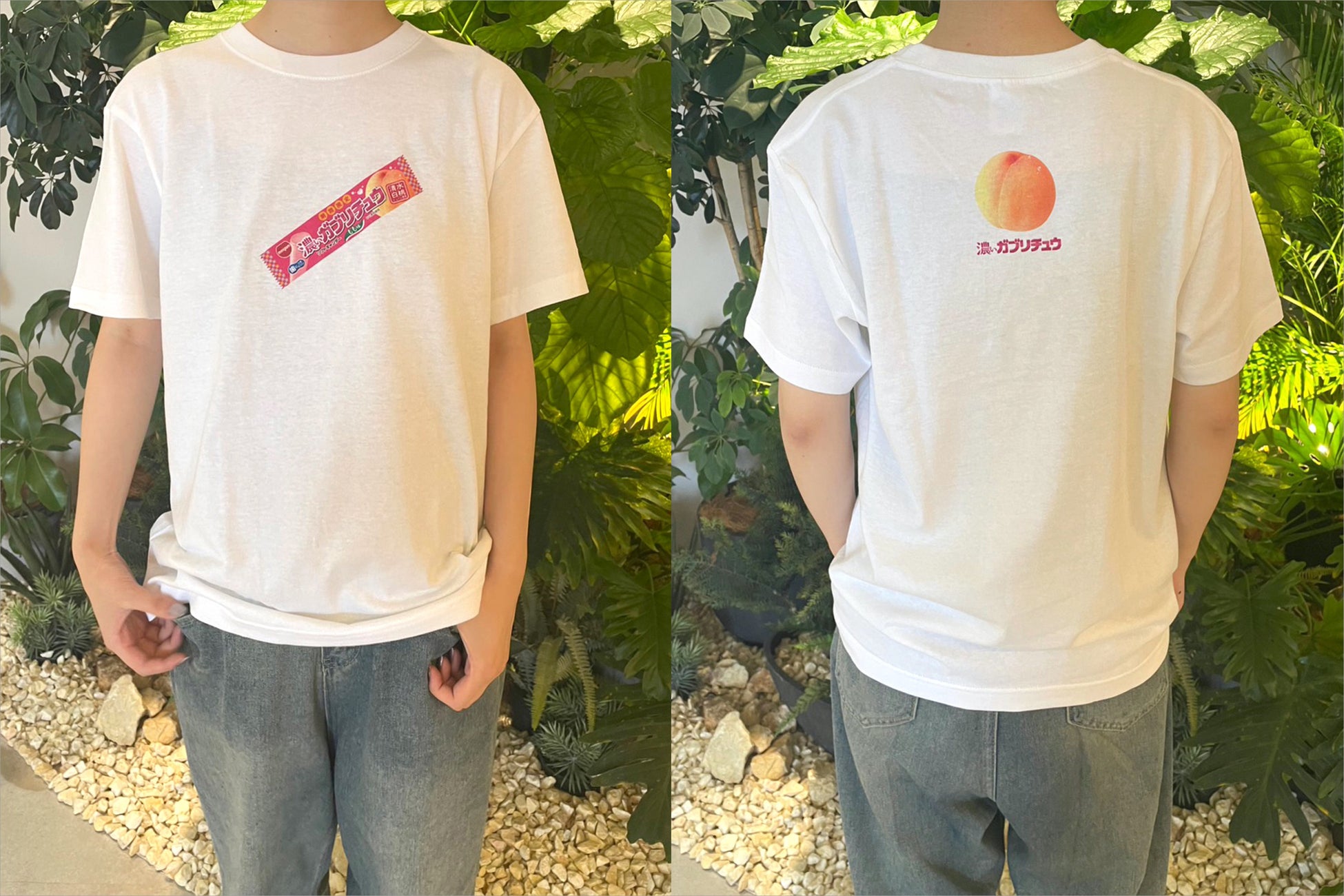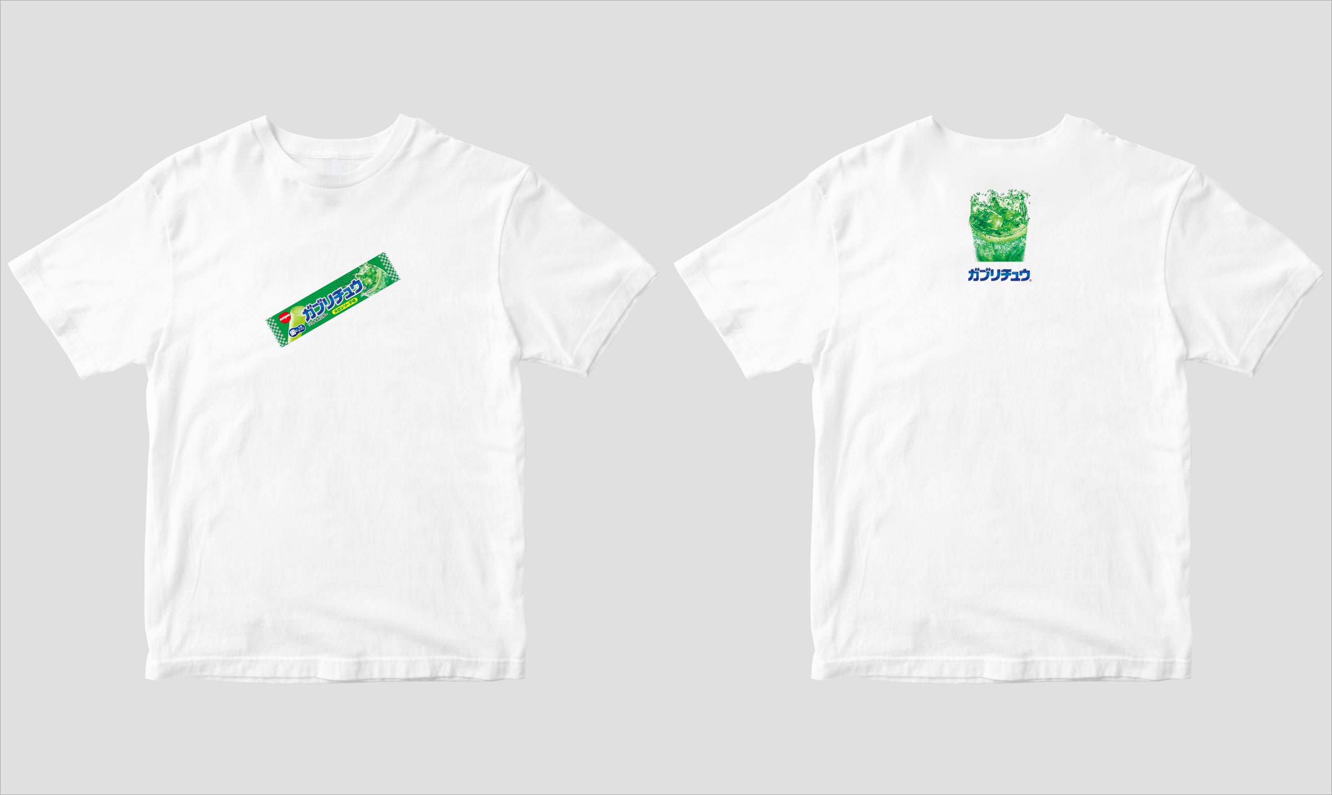 『ガブリチュウTシャツ』『ガブリチュウロンT』は、ガブリチュウの人気フレイバー『濃いガブリチュウもも味』『カラフルなガブリチュウ』『グレープ味』『ラムネ味』『コーラ味』『メロンソーダ味』の6種類がモチーフ。フロントには商品のパッケージを、バックにはフレイバーに合わせたフルーツやジュース、ロゴをあしらっています。どんなファッションにも合わせやすいシンプルなデザインに仕上がっているので、年齢や性別を問わずにご着用いただけます。