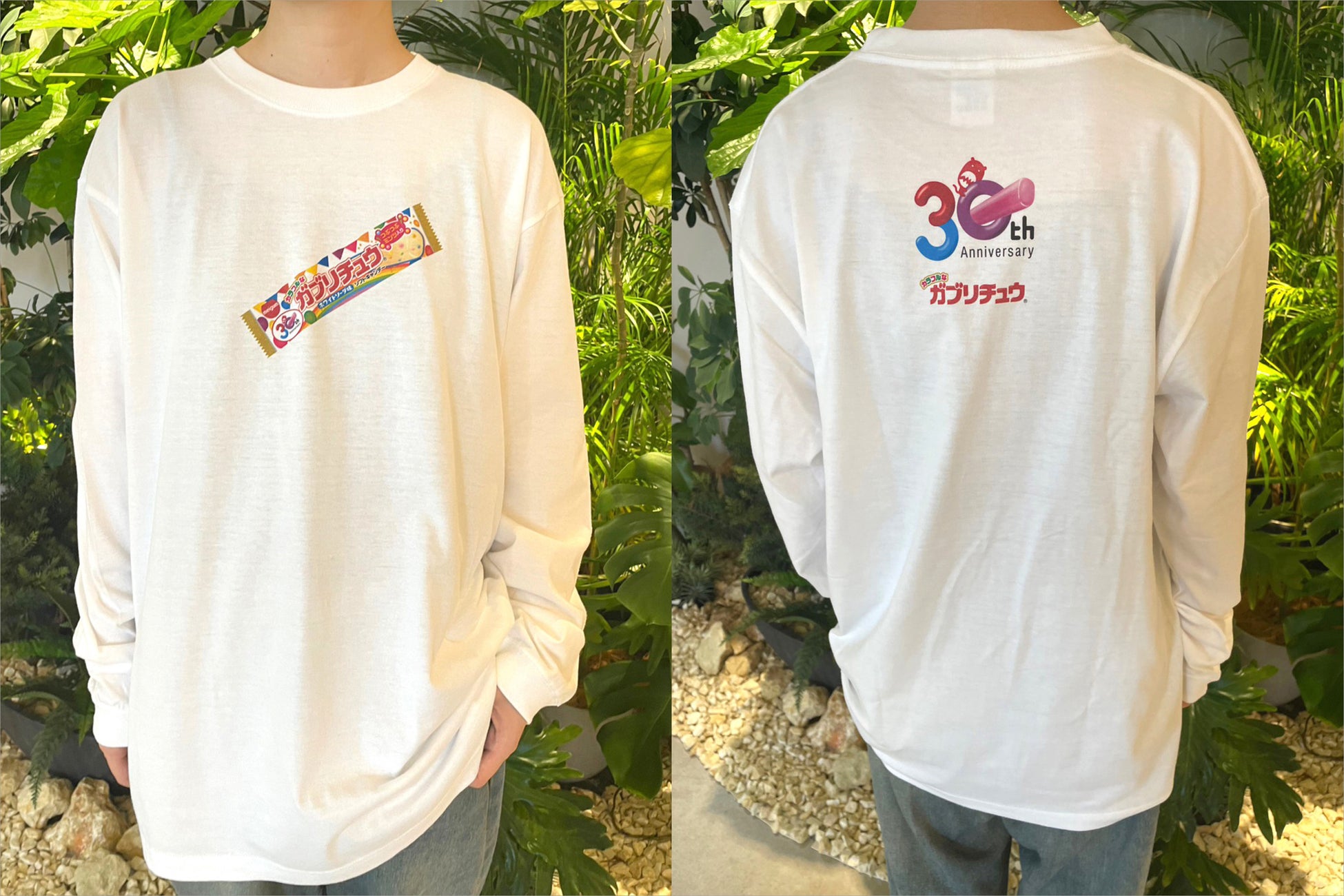 (株)リットーミュージックが運営するECサイト『T-OD』(https://t-od.jp/)では、同社の音楽系エンタメサイト『耳マン』(https://33man.jp/)と協力し、ガブリチュウのTシャツとロンTを制作。30周年の記念にふさわしいポップなアイテムを、8月23日より発売いたします。
