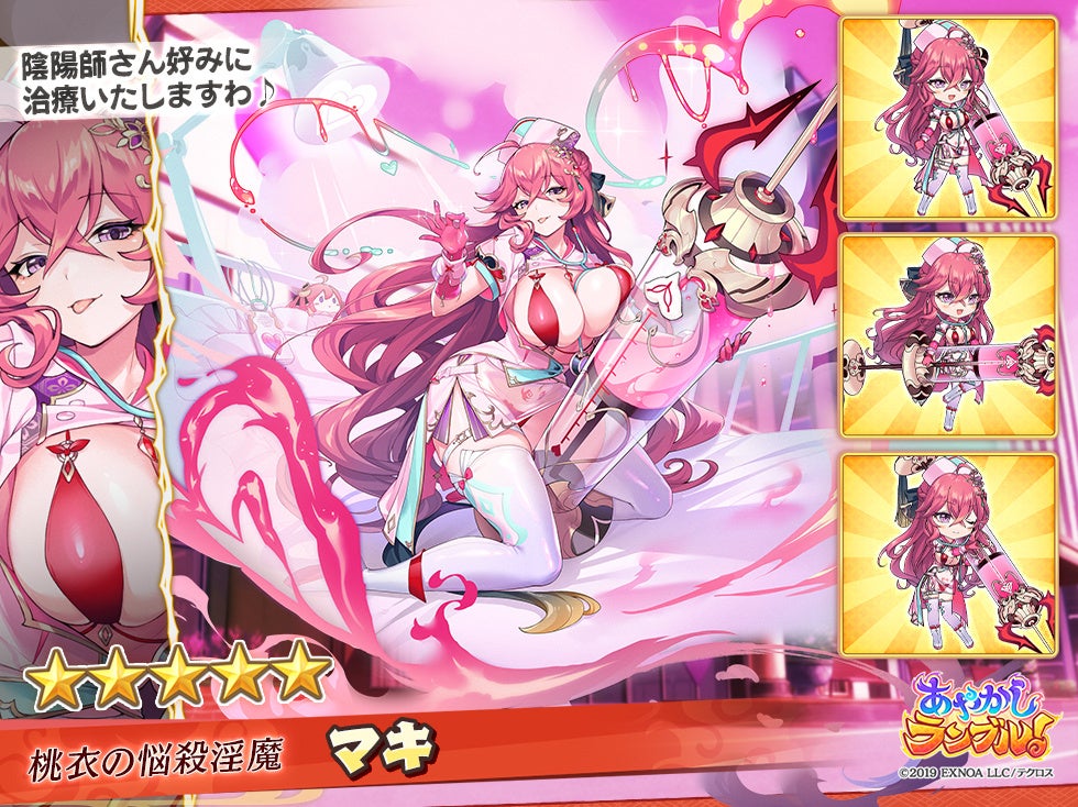 合同会社EXNOA(本社:東京都港区、CEO:村中 悠介、URL:https://games.dmm.com/)が運営するDMM GAMESにおいて、あやかし美少女たちと冒険する、迎撃型爽快スキルバトルRPG『あやかしランブル!』(https://ayarabu.jp/)は、4月1日に、新たに期間限定「★5 マキ」「★5 チハヤ」を追加したことを発表しました。