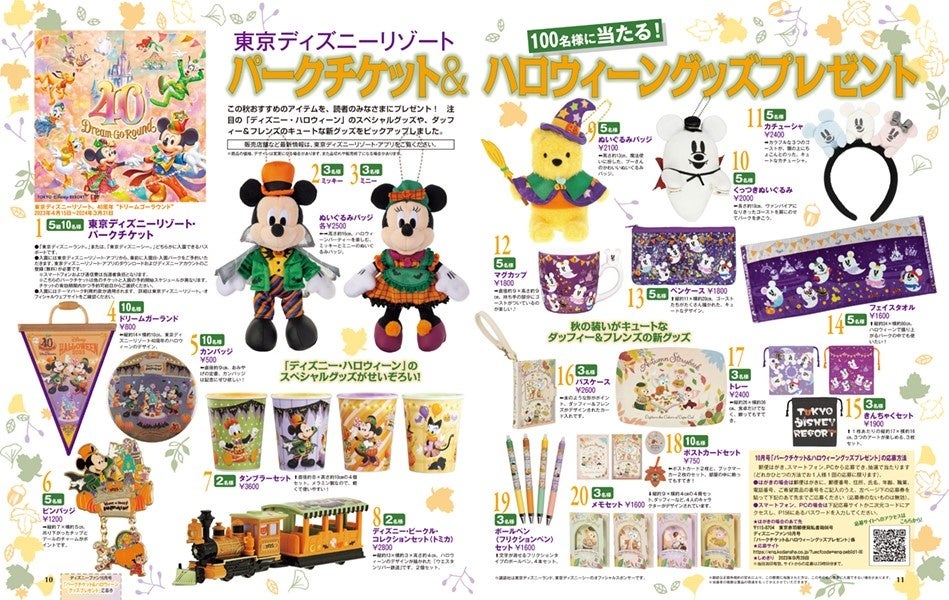 さらに、秋らしいグッズやメニューが登場する「ダッフィー&フレンズのオータム・ストーリーブック」情報もお届け。ジャニーズWEST中間淳太さんのキャスト取材企画や、東京ディズニーランドホテル開業15周年を記念した、ミリアルリゾートホテルズ代表取締役社長チャールズ・D・べスフォード氏のスペシャルインタビューなど、ディズニーファンならではの企画もお見逃しなく!