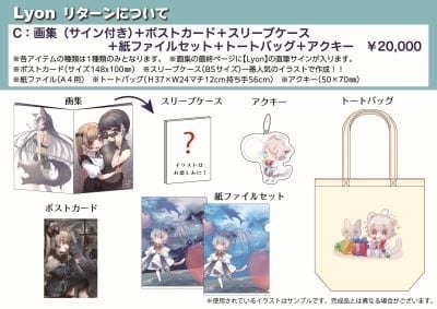画集(サイン付き)+ポストカード+スリーブケース+紙ファイルセット+トートバッグ+アクキー ¥20,000