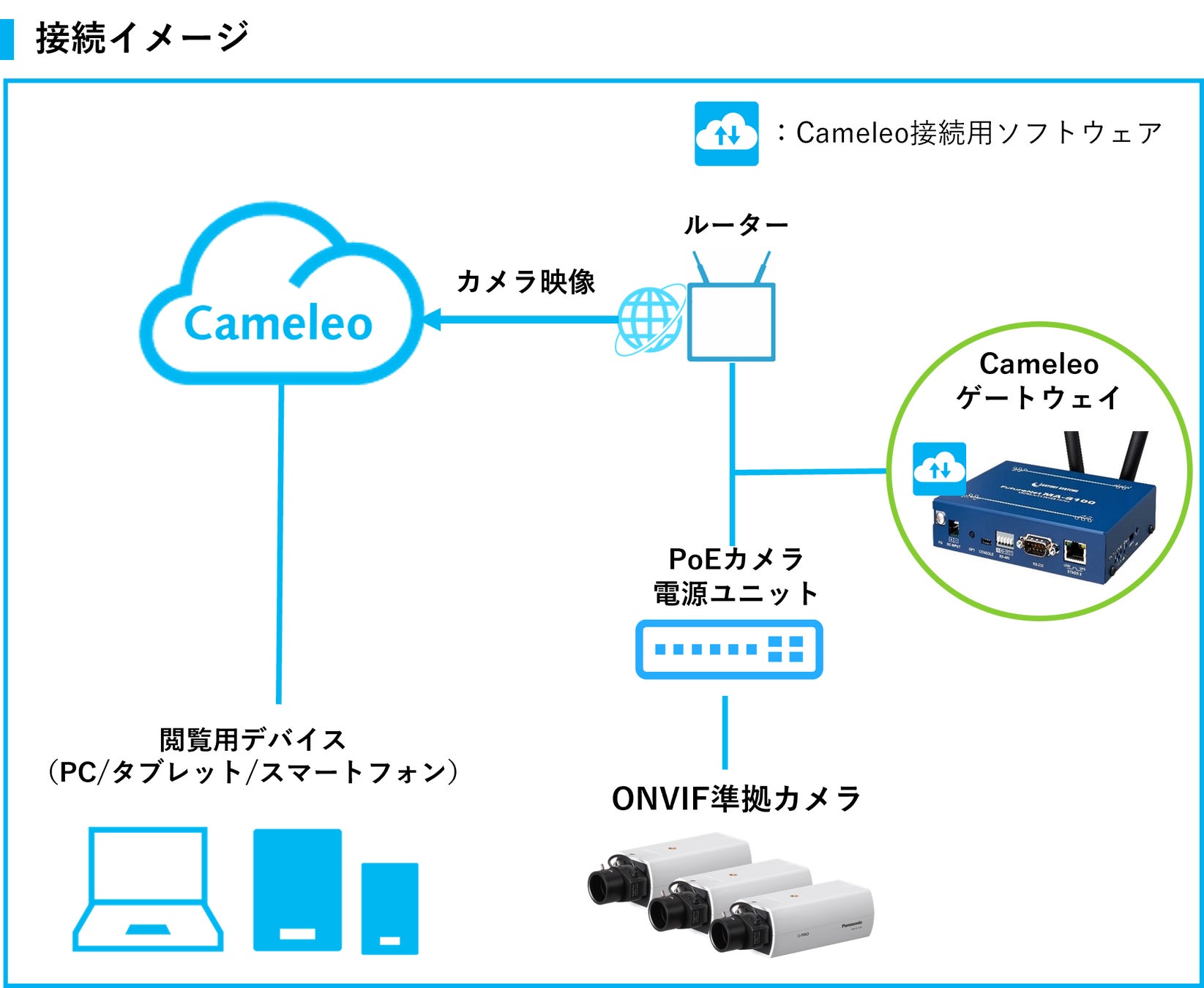ONVIF対応カメラの接続時には、Cameleoゲートウェイ経由となり、ゲートウェイ1台あたり6台(※3)のカメラを収容できます。