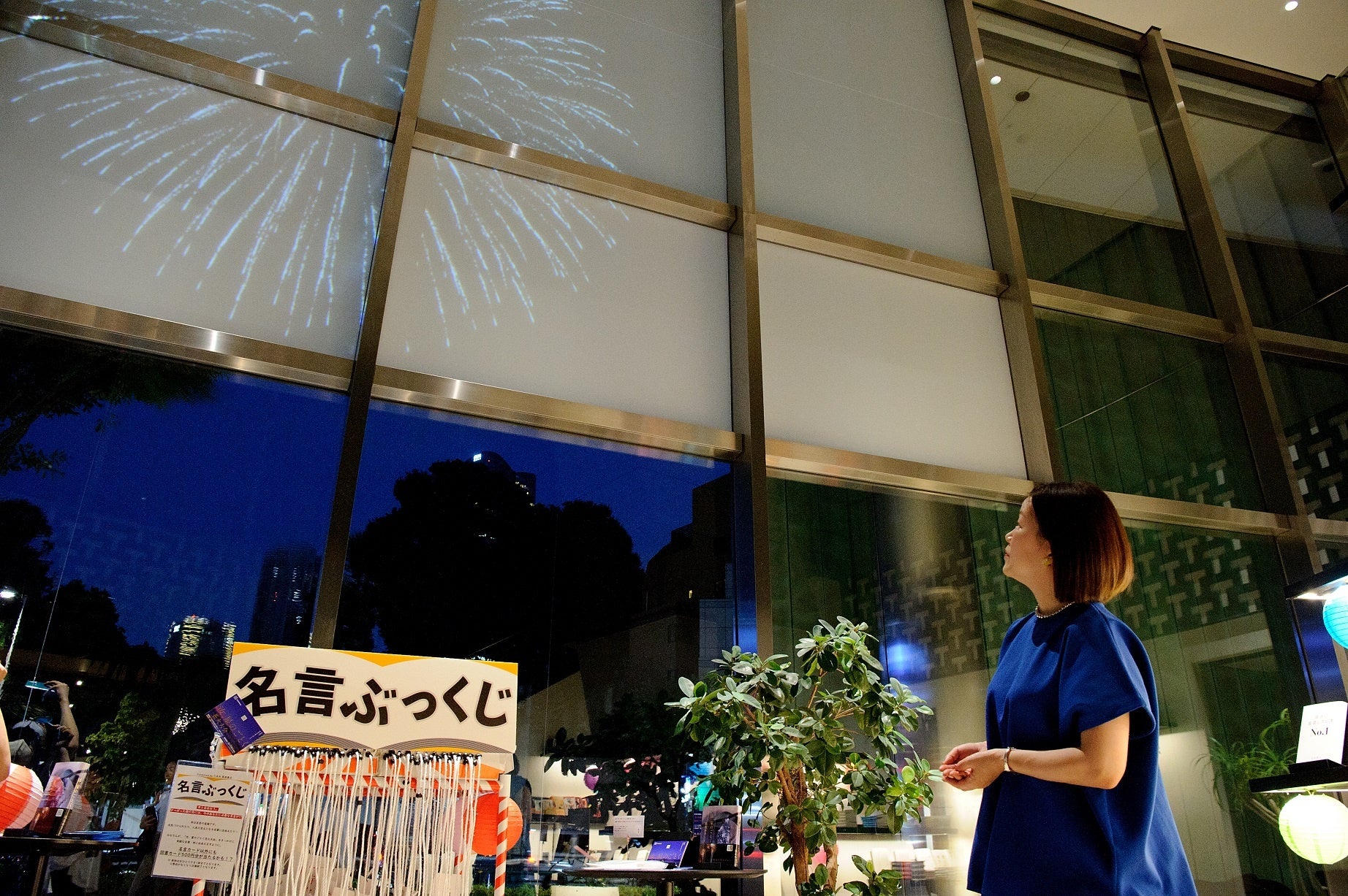 六本木 蔦屋書店で行われた「プロジェクションマッピング花火」は、8月14日より行われている【「汝、星のごとく」花火大会】のイベントのひとつ。