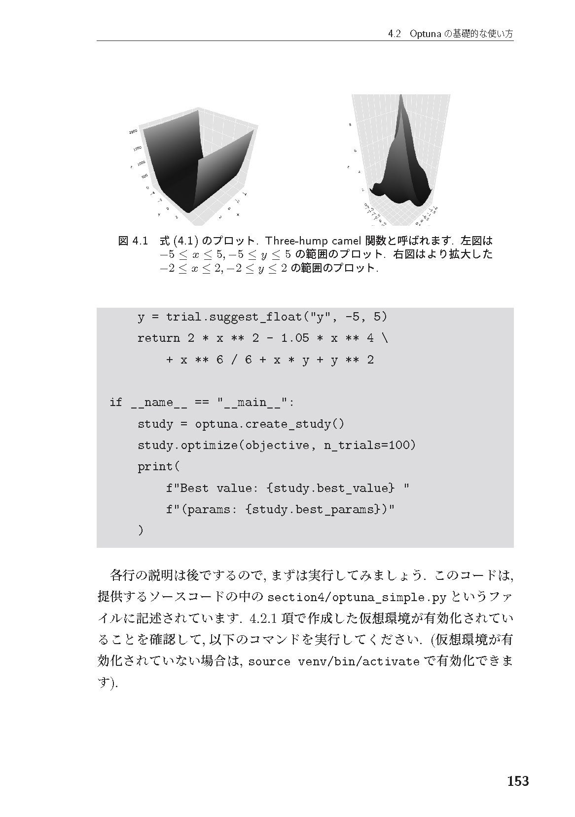 本書ではこのベイズ最適化の理論・アルゴリズムを基礎から応用まで詳細に説明しています。またブラックボックス最適化ソフトウェア「Optuna」を利用したアルゴリズムの実装方法も紹介。本書を読むことで、ベイズ最適化という強大なフレームワークの全貌を理解し、理論と実装を習得することができます。