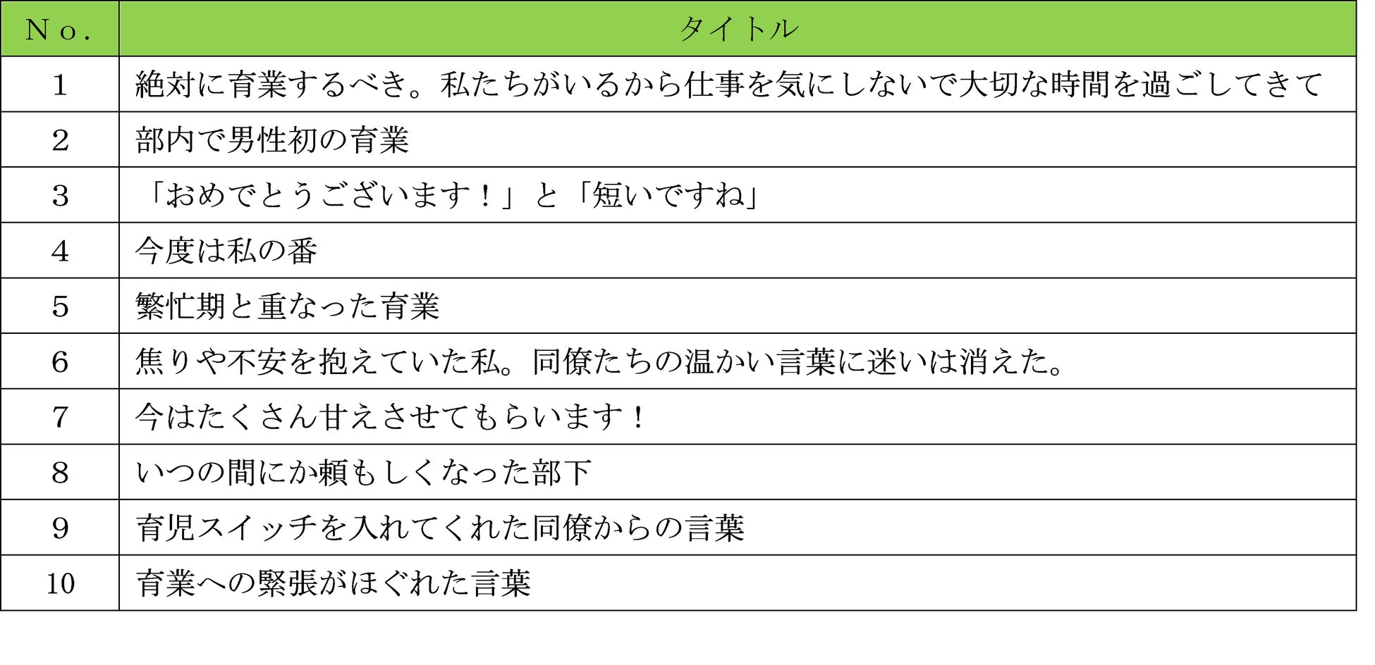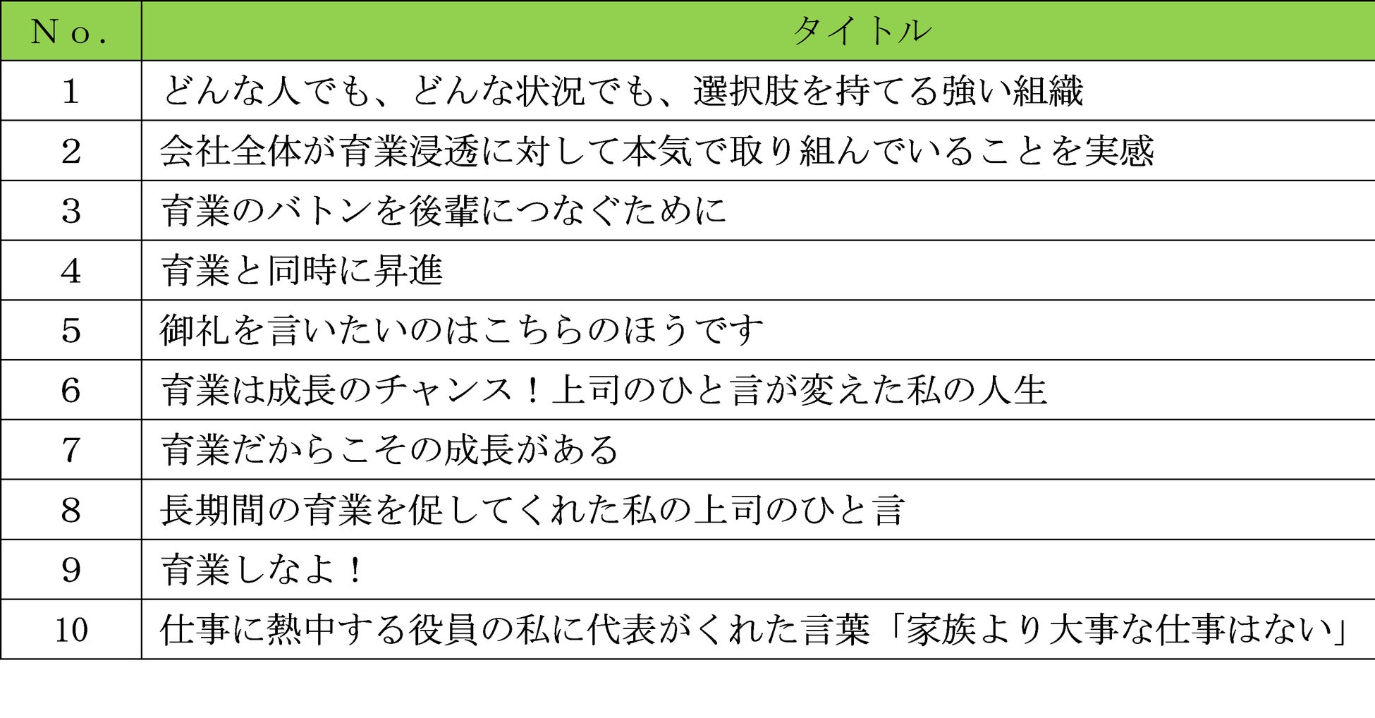 育業いいね!と思える職場の雰囲気づくりのために、各部門ごとに印象に残った作品や共感した作品を1点選