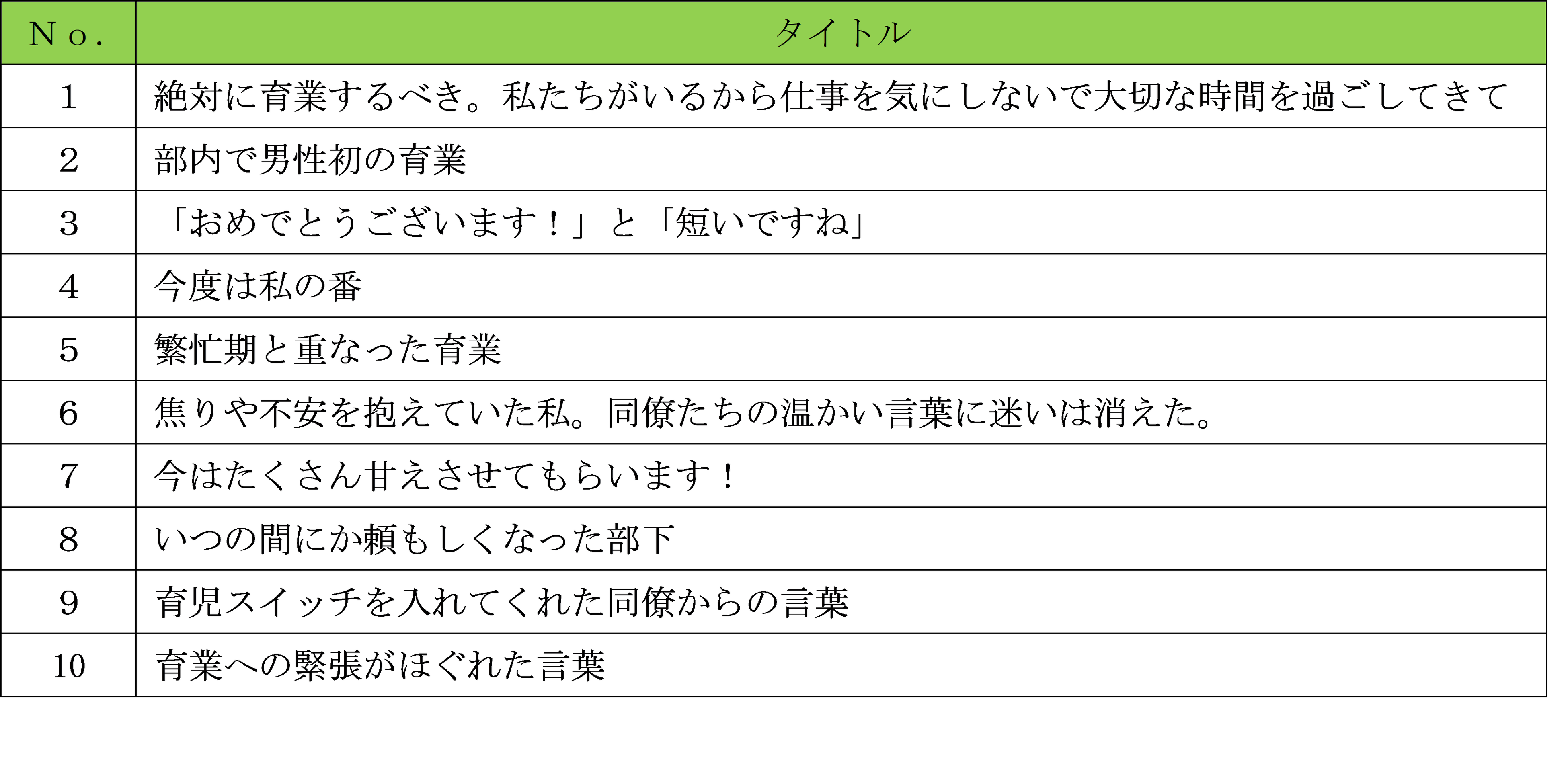 〇同僚部門:「実は嬉しかった…同僚からの育業応援メッセージ」