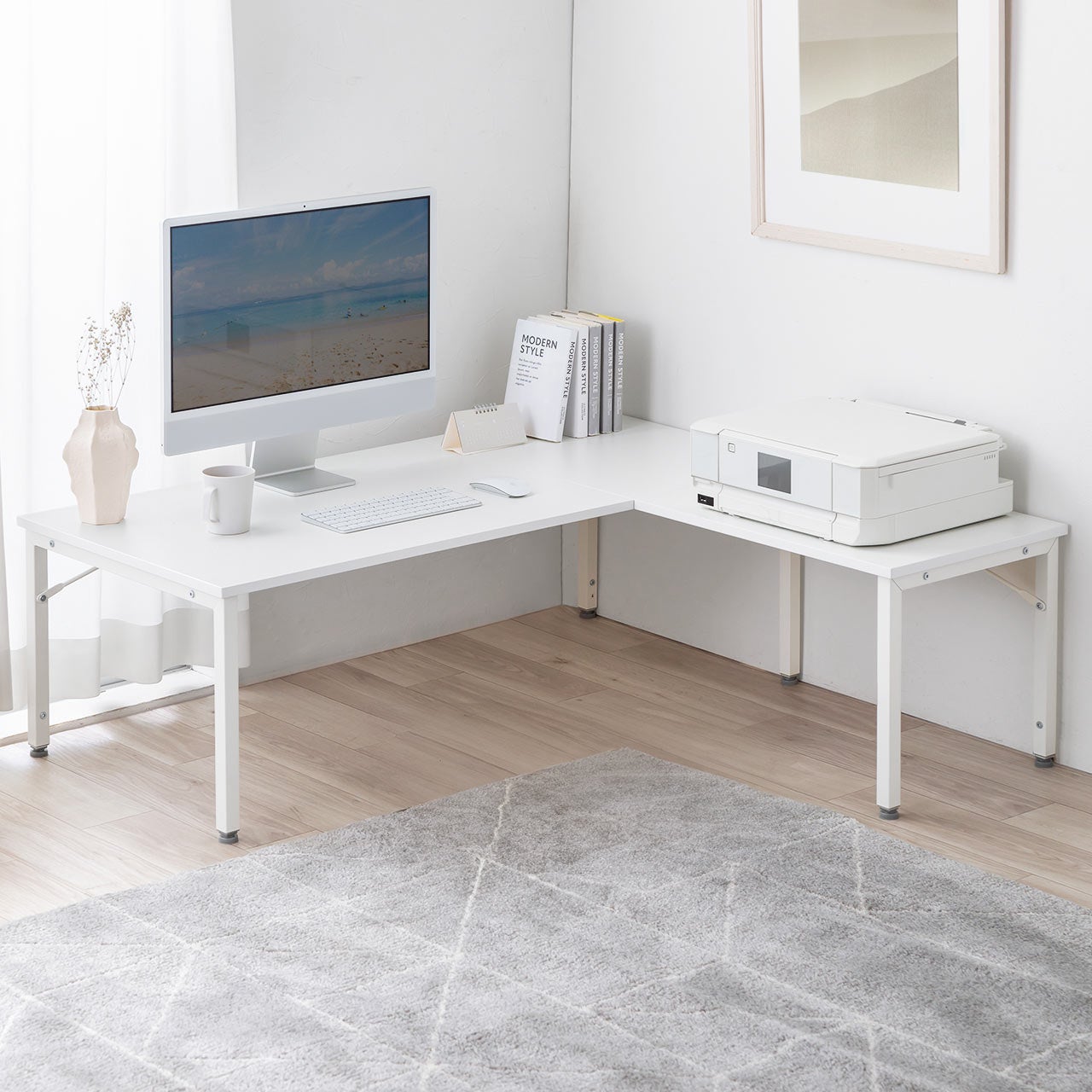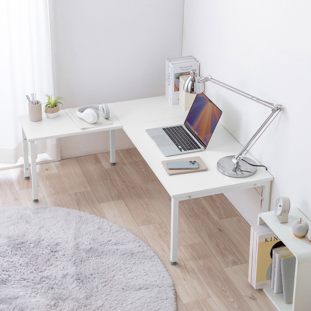 コーナースペースを最大限活かせるL字型デザインは、省スペースながら十分な作業面積を確保。L字のデスクになっているため、天板を広く自由に使う事ができます。白・黒・ブラウンの3色から選択いただけます。