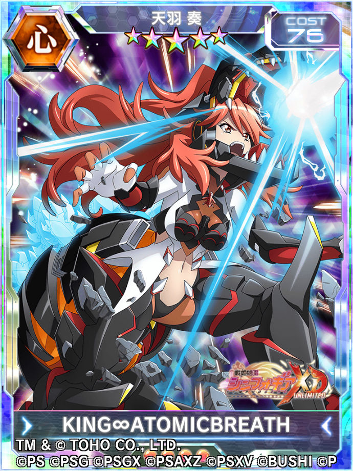 また、コラボイベント復刻にあわせて、ゴジラ型ギアをまとった天羽奏の★5シンフォギアカード「天羽奏【KING∞ATOMICBREATH】」を超覚醒対象カードに追加します。