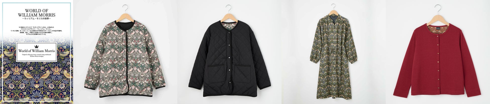 イオンは10月10日(金)より順次、「イオン」「イオンスタイル」約310店舗※1)と「イオンスタイルオンライン」にて、大人世代のおしゃれ服「JEUNE MAMAN(以下、ジュネママン)」より、「ワールド・オブ・ウィリアム・モリス(World of William Morris)」柄のキルトジャケットやインナーTシャツなど計16種類※2)を販売します。2025年4月発売の春夏アイテムに続く、ワールド・オブ・ウィリアム・モリス柄のアイテム第2弾です。