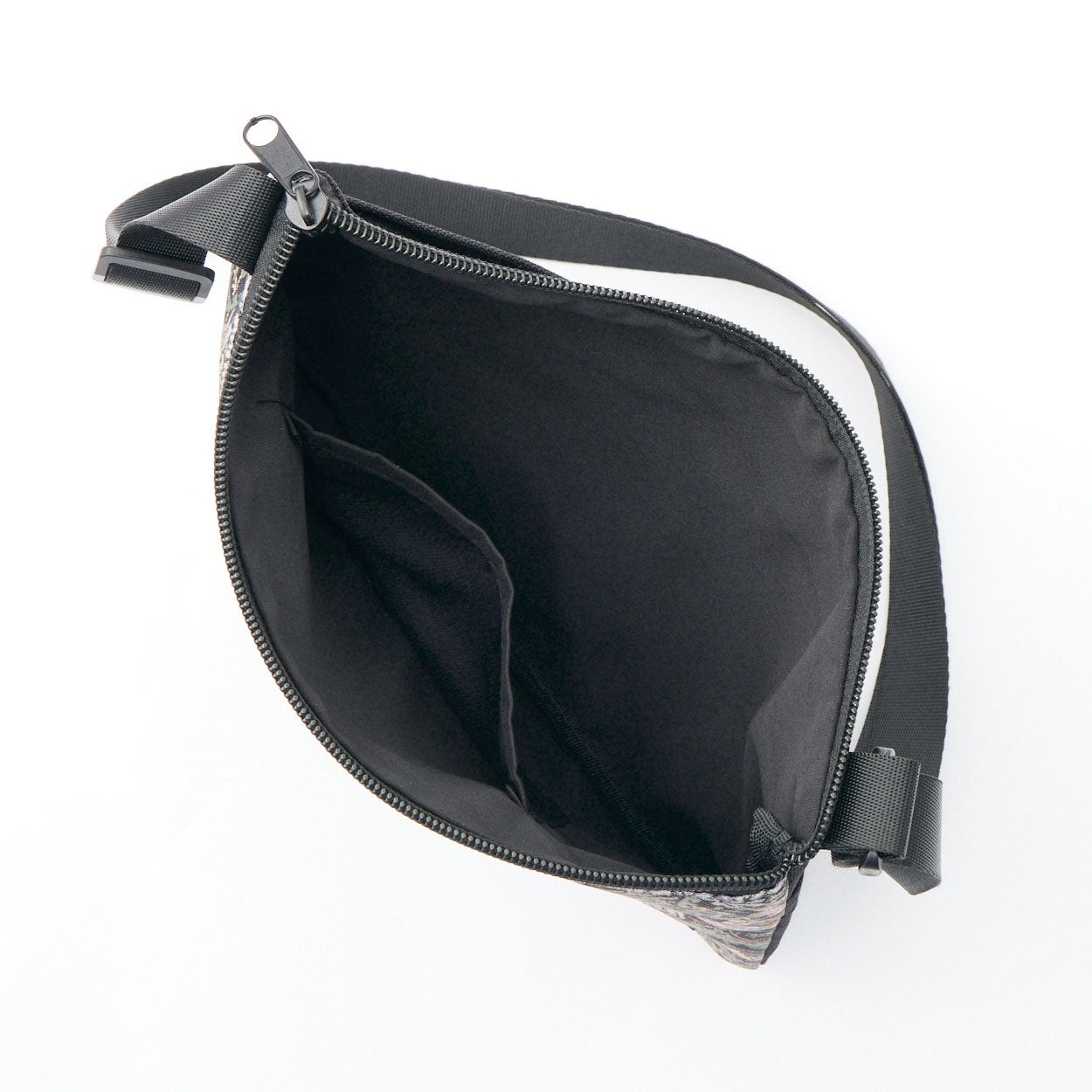 表地に“いちご泥棒”をプリントした軽くてコンパクトなサコッシュです。