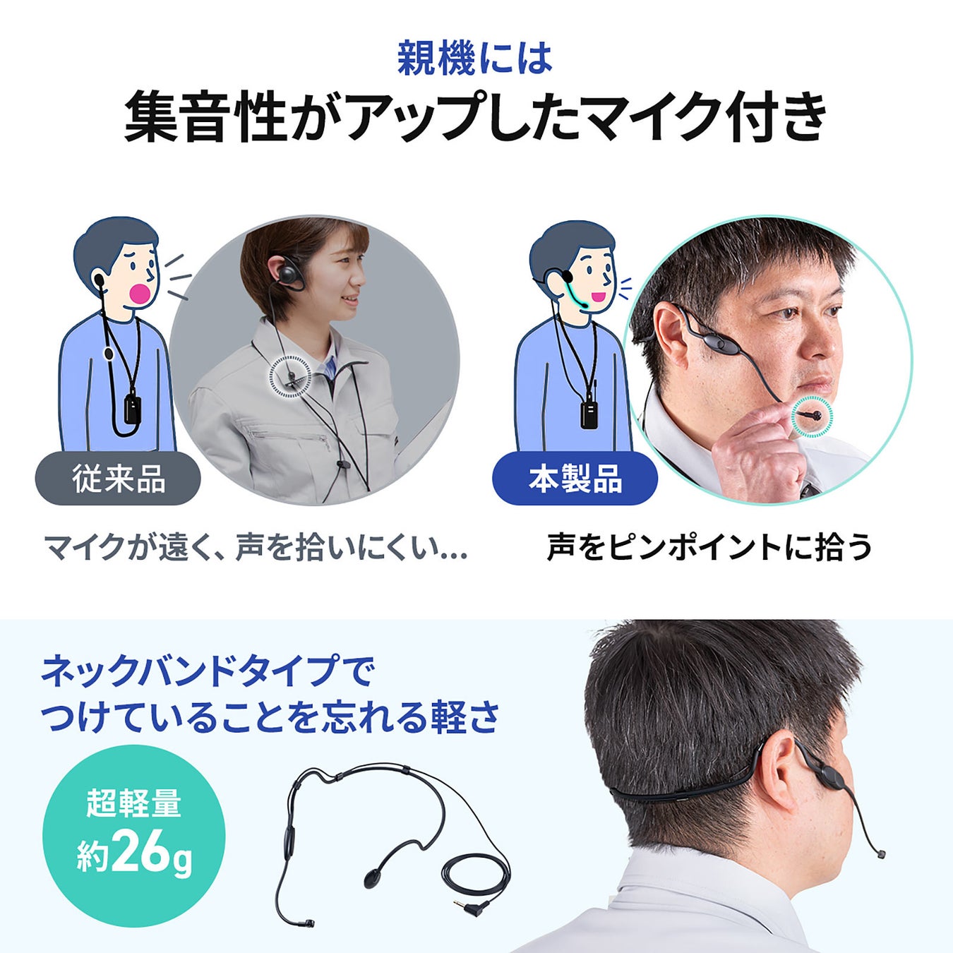 ワイヤレスガイドシステム 子機 ガイド用イヤホンマイク ツアーガイドシステムマイク 単方向通信 1チャンネル最大100台接続 工場見学 旅行 団体 インカム 無線 軽量