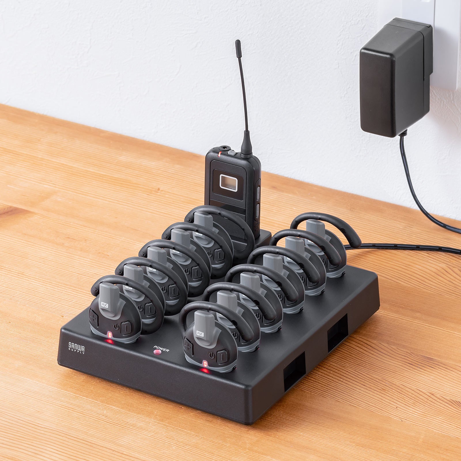 【親機1台+子機11台+充電器1台セット】ワイヤレスガイドシステム 単方向通信 親機(400-HSGS004T)/子機(400-HSGS004R)/充電器(400-HSGS004-CL1)