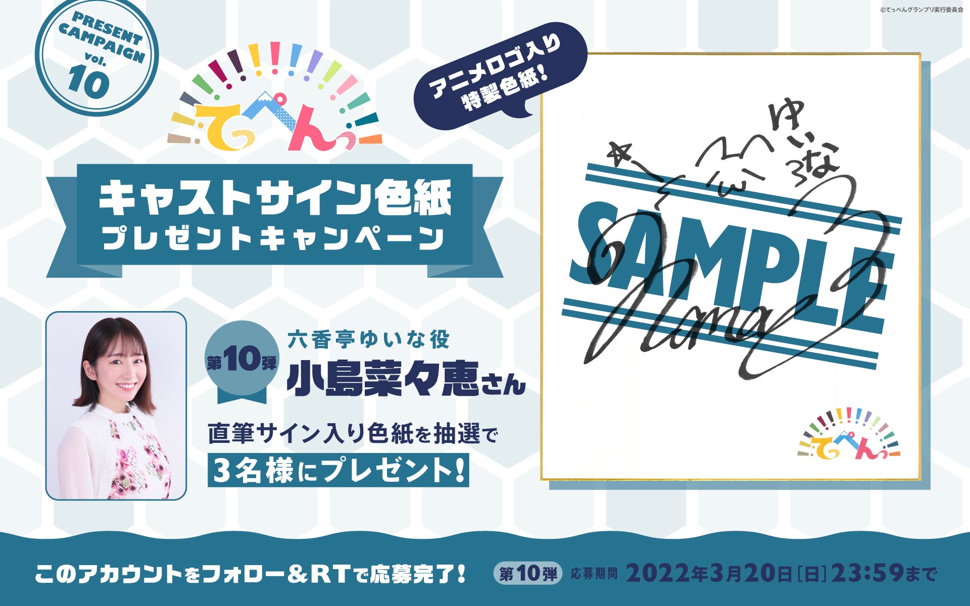 第10弾は六香亭ゆいな役の小島菜々恵さんの直筆サイン入り色紙を抽選で3名様にプレゼント!